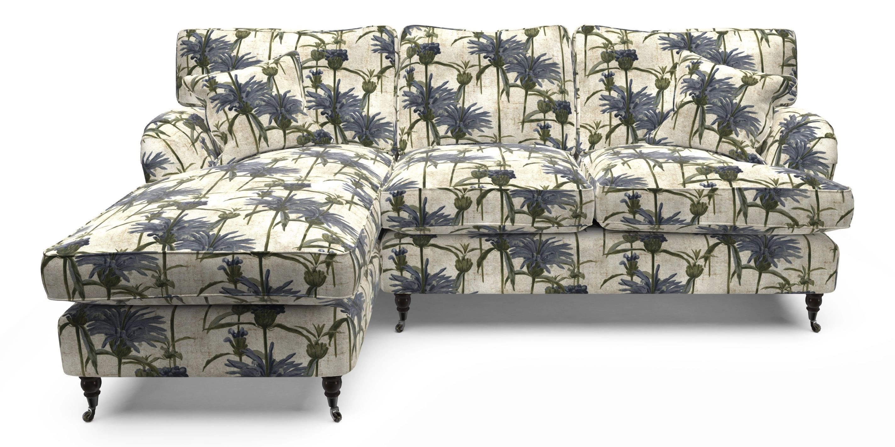 Alwinton Chaise Sofa LHF in RHS Botanicals on Velvet - Henry Moon Lion's Tail : Cornflower