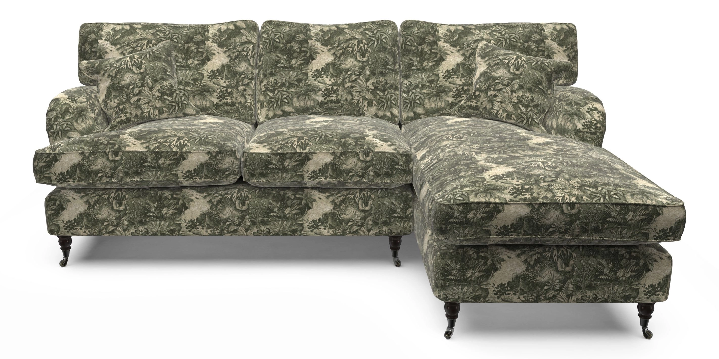 • Alwinton Chaise Sofa RHF in RHS Botanicals on Velvet - Ferns Toile : Forest