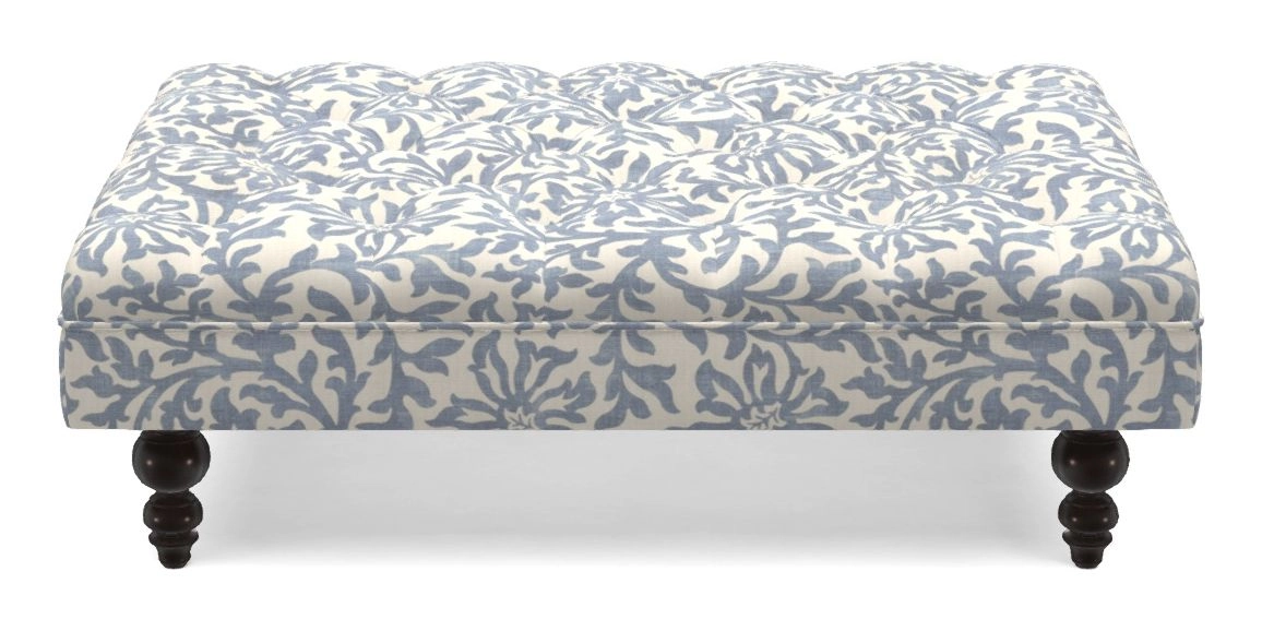 Bedham Bespoke Standard Footstools in V&A Brompton Collection - Floral Scroll : Morning Blue