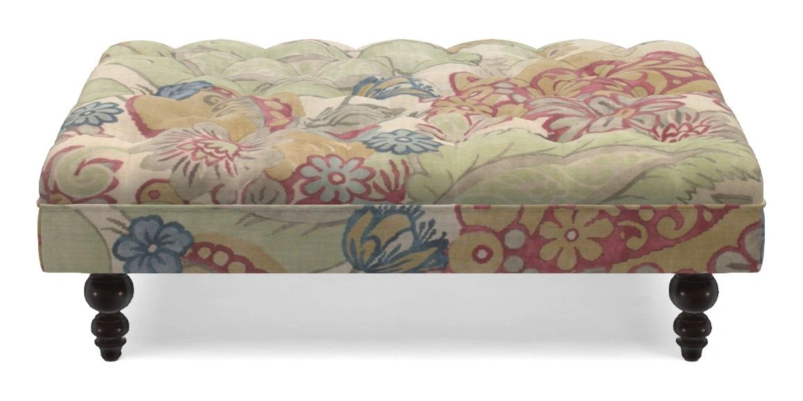 Bedham Bespoke Standard Footstools in Floral Linen : Carcassonne Laurel