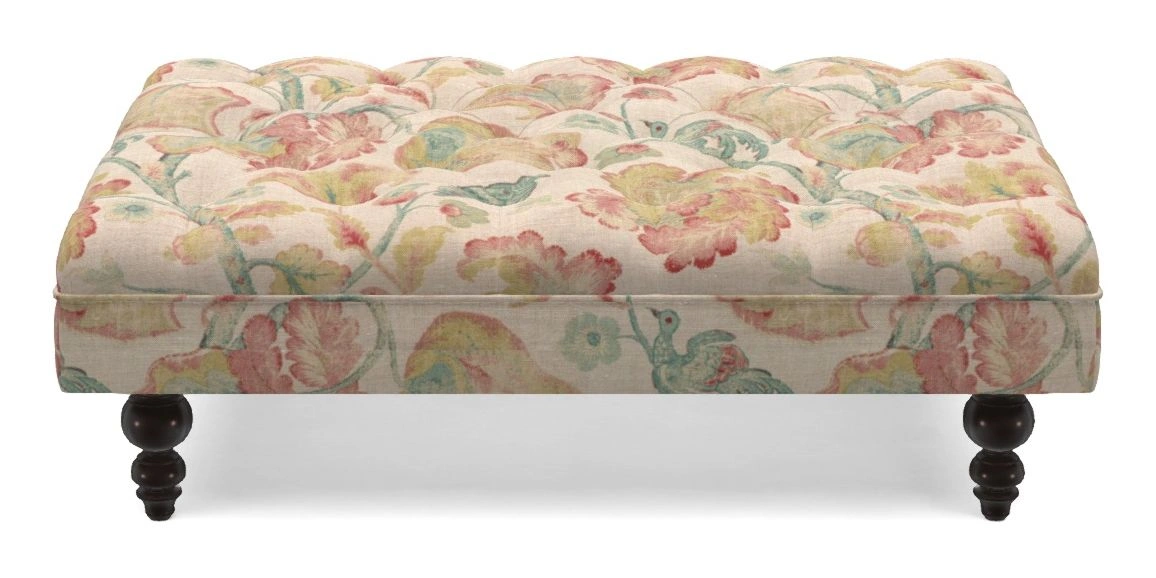 Bedham Bespoke Standard Footstools in Floral Linen : L Oiseaux Dusk