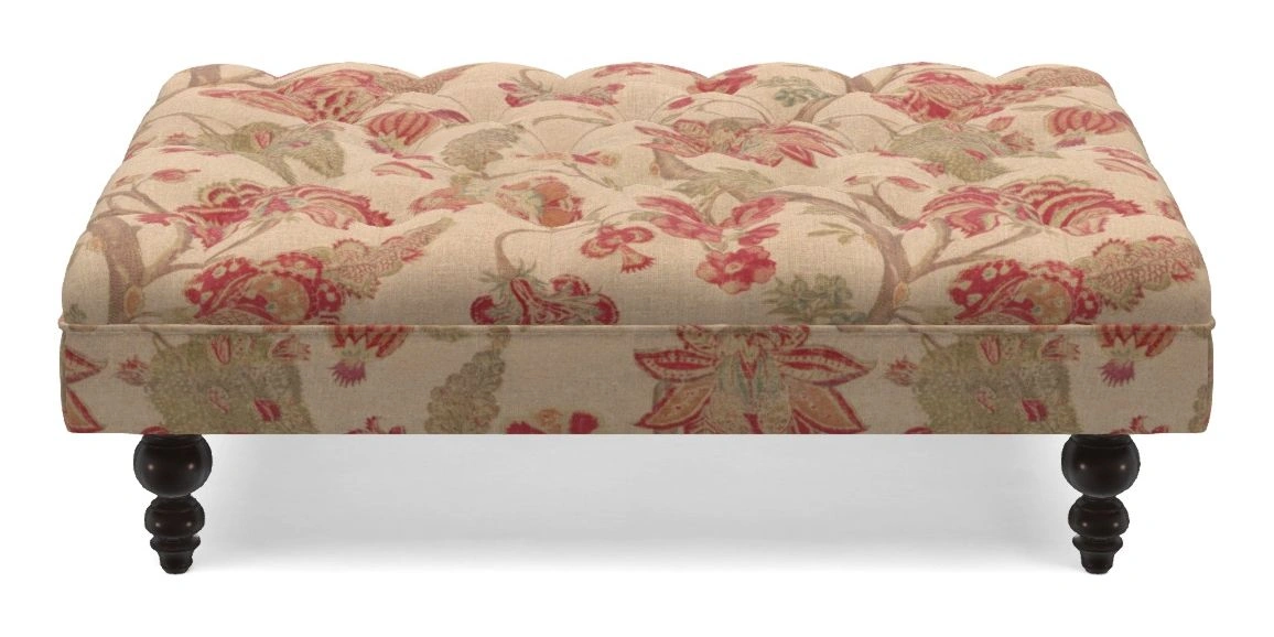 Bedham Bespoke Standard Footstools in Floral Linen : Indienne T Rosso