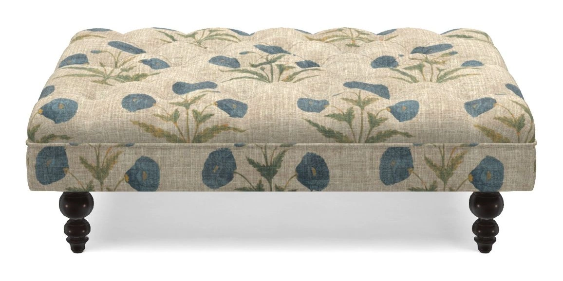 Bedham Bespoke Standard Footstools in V&A Threads of India on Linen - Regal Poppy : Gentian