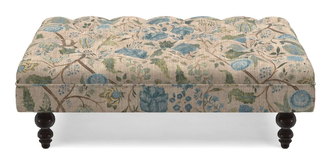 Bedham Bespoke Standard Footstools in V&A Threads of India on Linen - Tree of Life : V&A Threads of India on Linen - Tree of Life Chalk