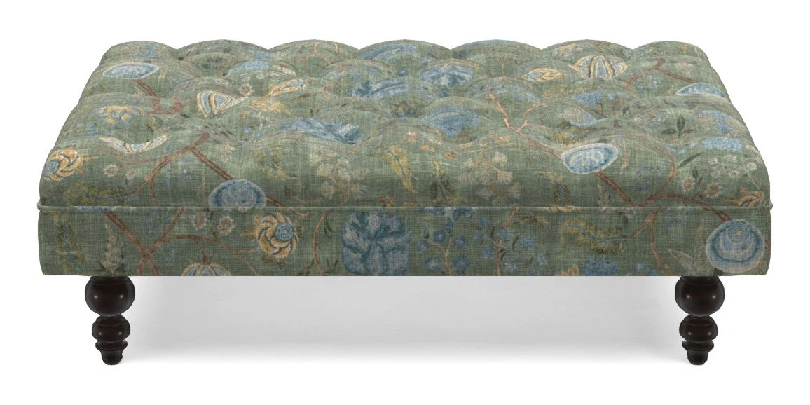Bedham Bespoke Standard Footstools in V&A Threads of India on Linen - Tree of Life : V&A Threads of India on Linen - Tree of Life Rosemary