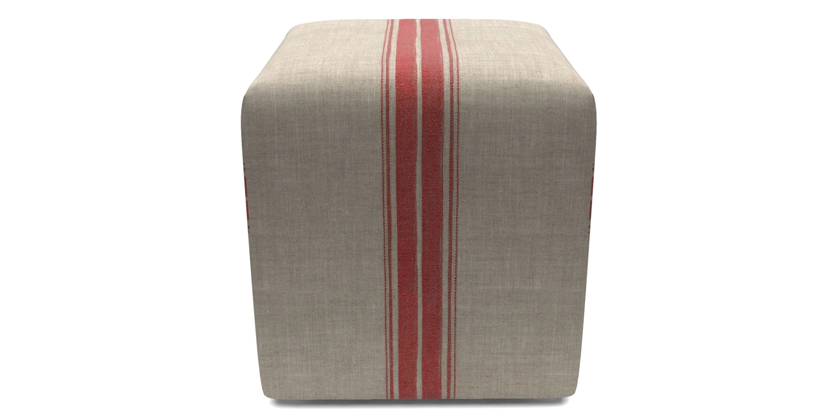 Cube Footstools in Woven Linen Stripe - Ganton : Ganton Woven Linen Stripe Red