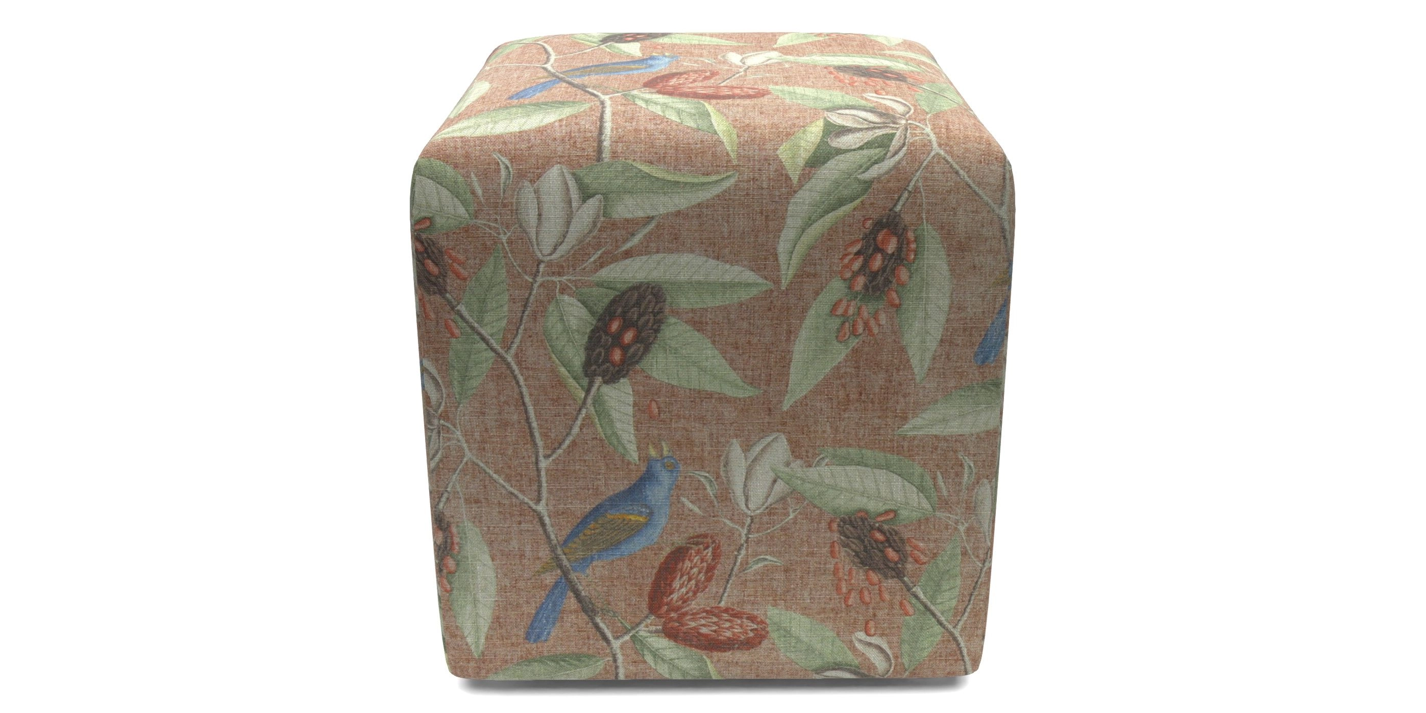 Cube Footstools in RHS Botanicals - Mark Catesby Grosbeak : Terracotta