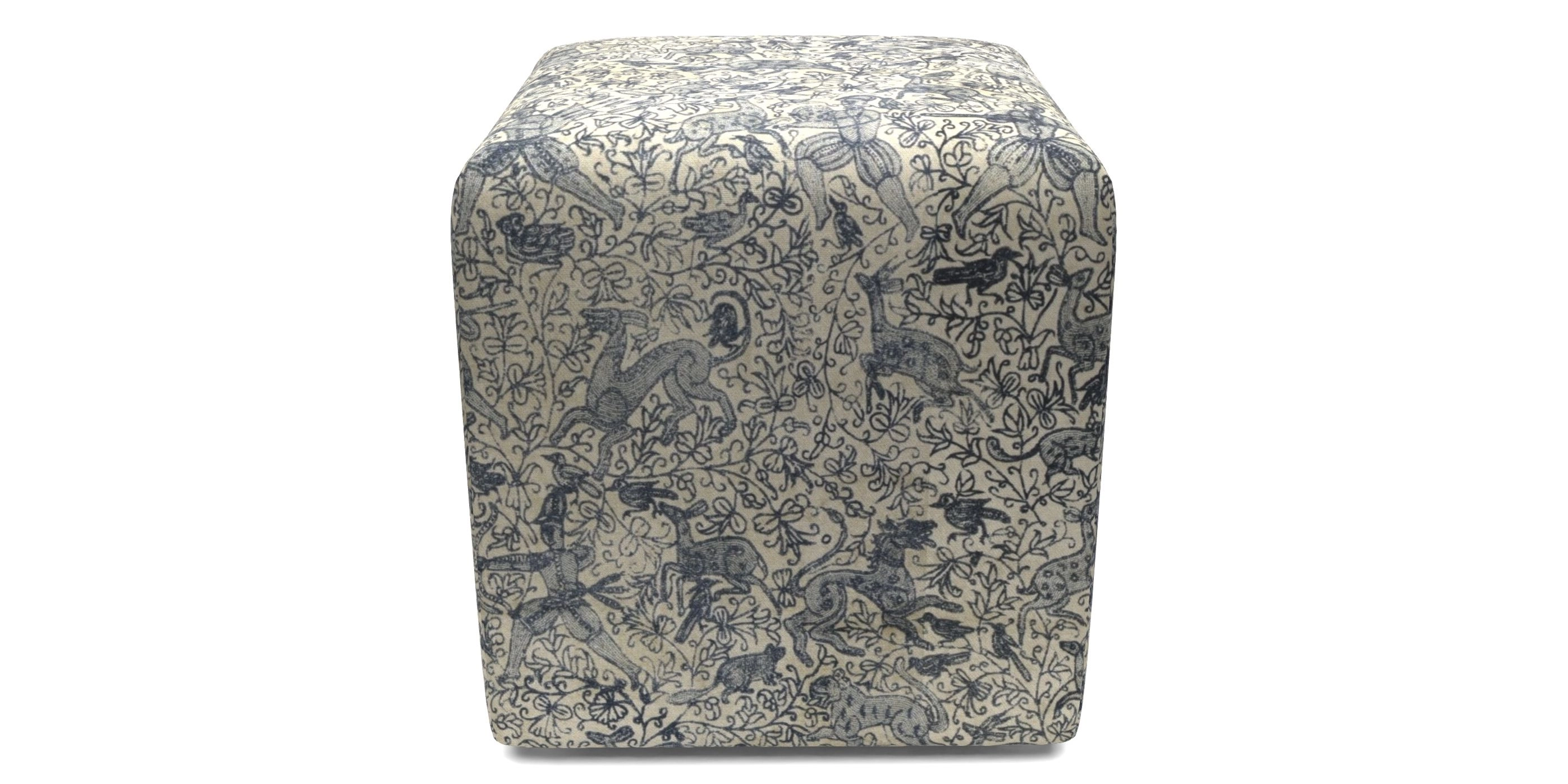• Cube Footstools in V&A Threads of India Opulent Velvets - Forest Creatures : V&A Threads of India Opulent Velvets - Forest Creatures Ink