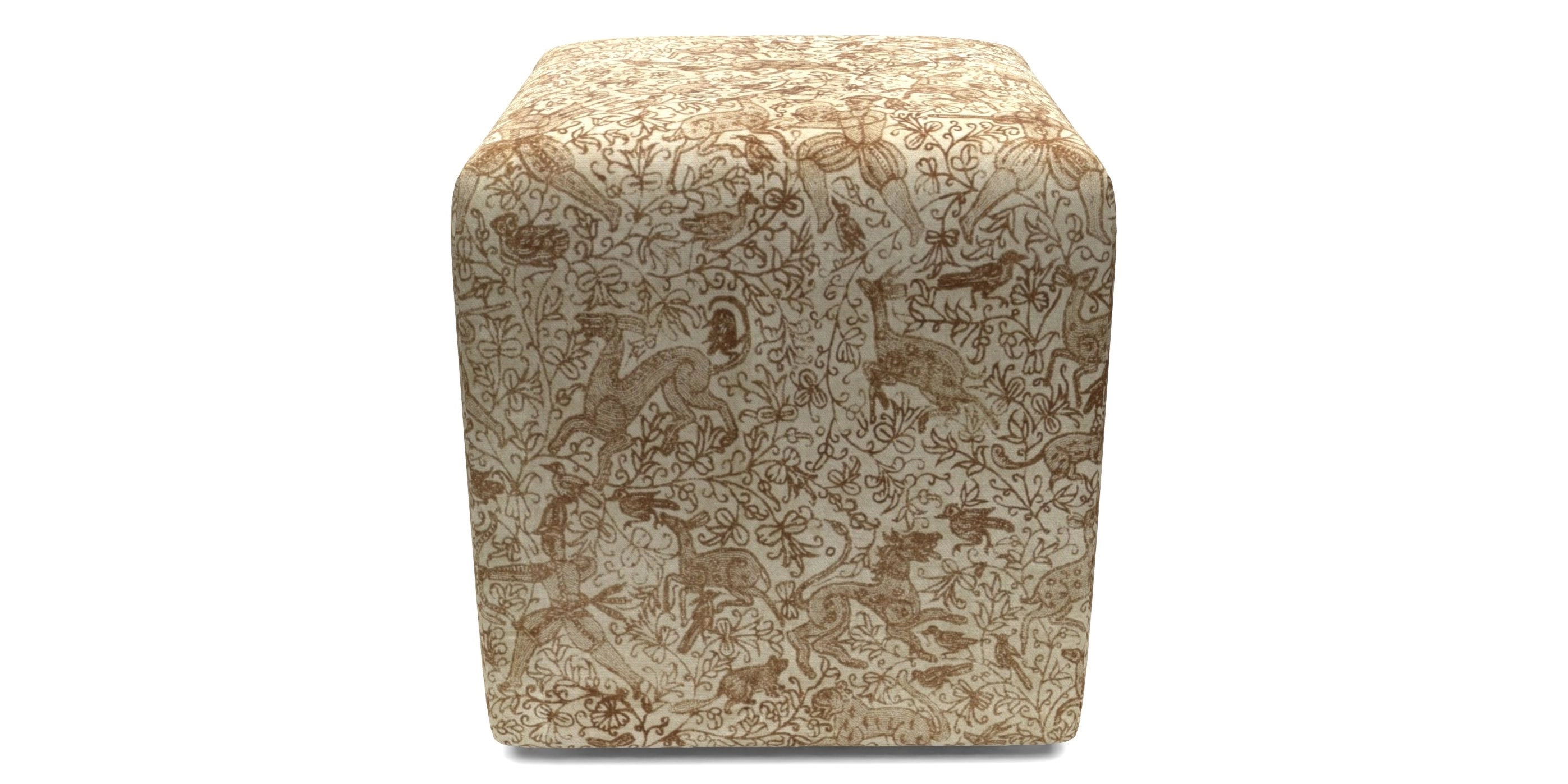 Cube Footstools in V&A Threads of India Opulent Velvets - Forest Creatures : V&A Threads of India Opulent Velvets - Forest Creatures Sandstone