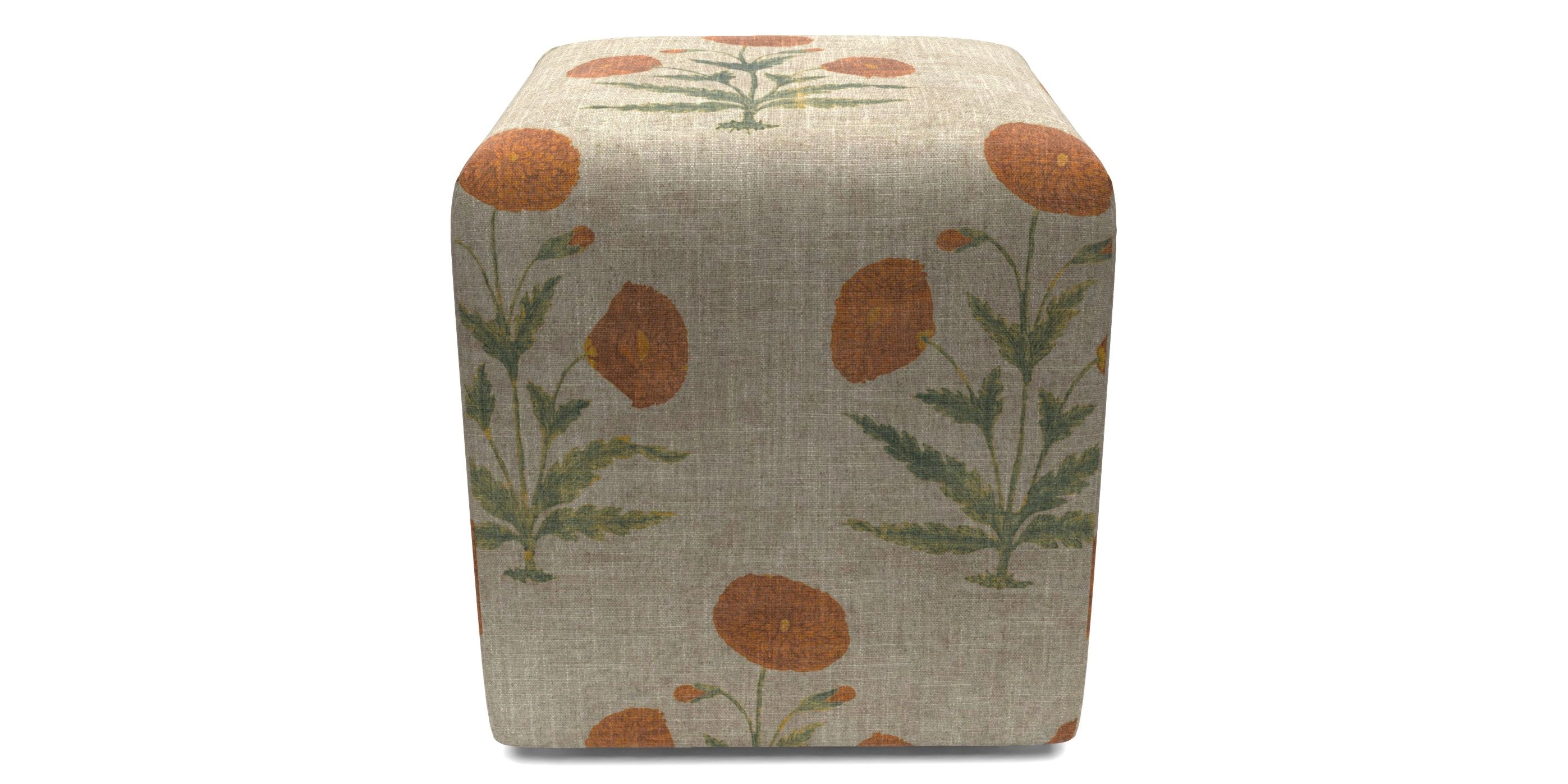 Cube Footstools in V&A Threads of India on Linen - Regal Poppy : Marigold