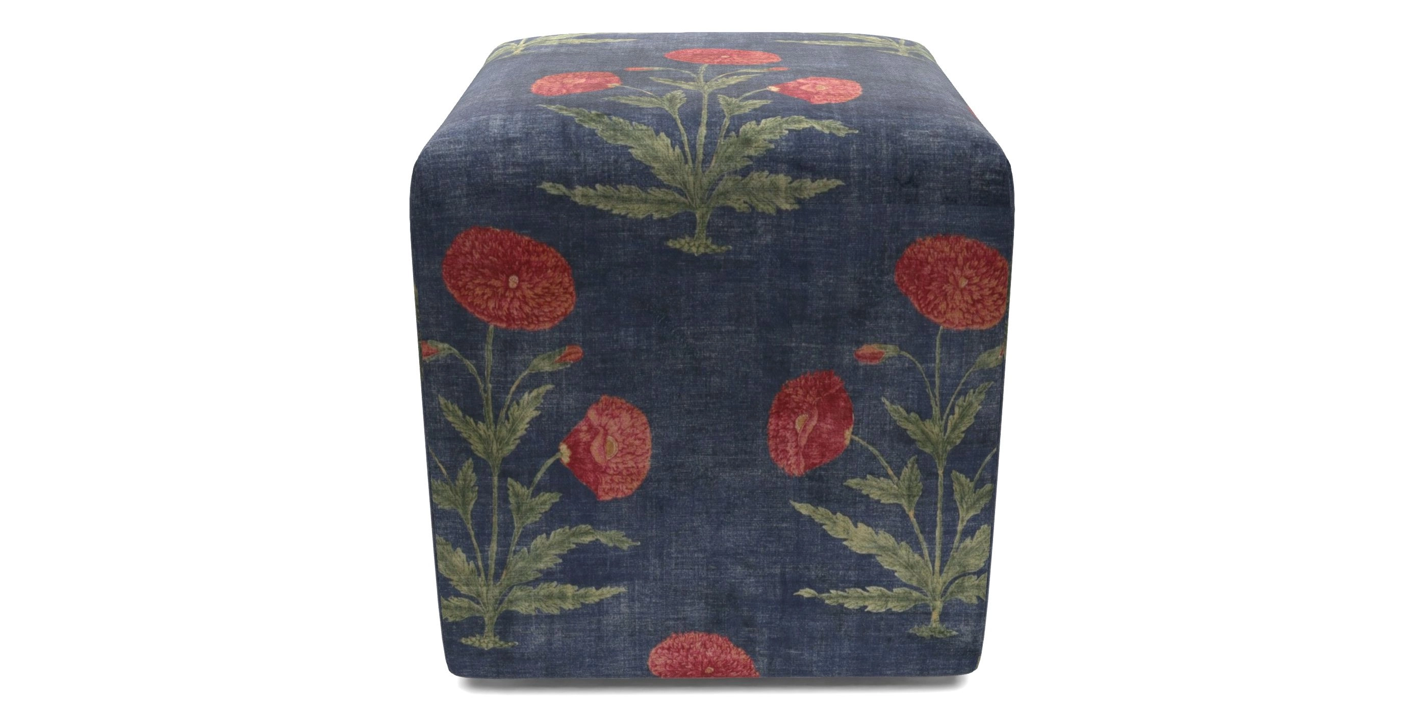 • Cube Footstools in V&A Threads of India Opulent Velvets - Regal Poppy : V&A Threads of India Opulent Velvets - Regal Poppy Ink