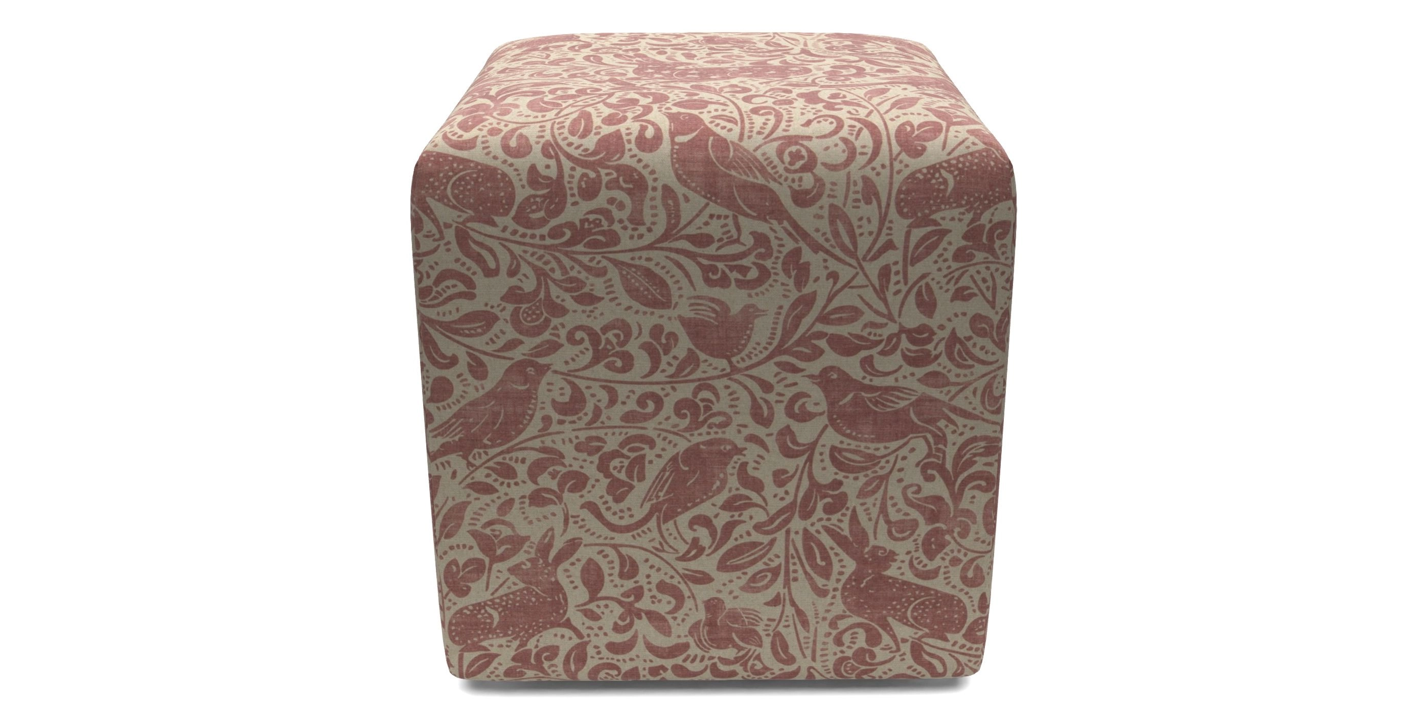 Cube Bespoke Standard Footstools in V&A Drawn From Nature - Bird and Rabbit : Red