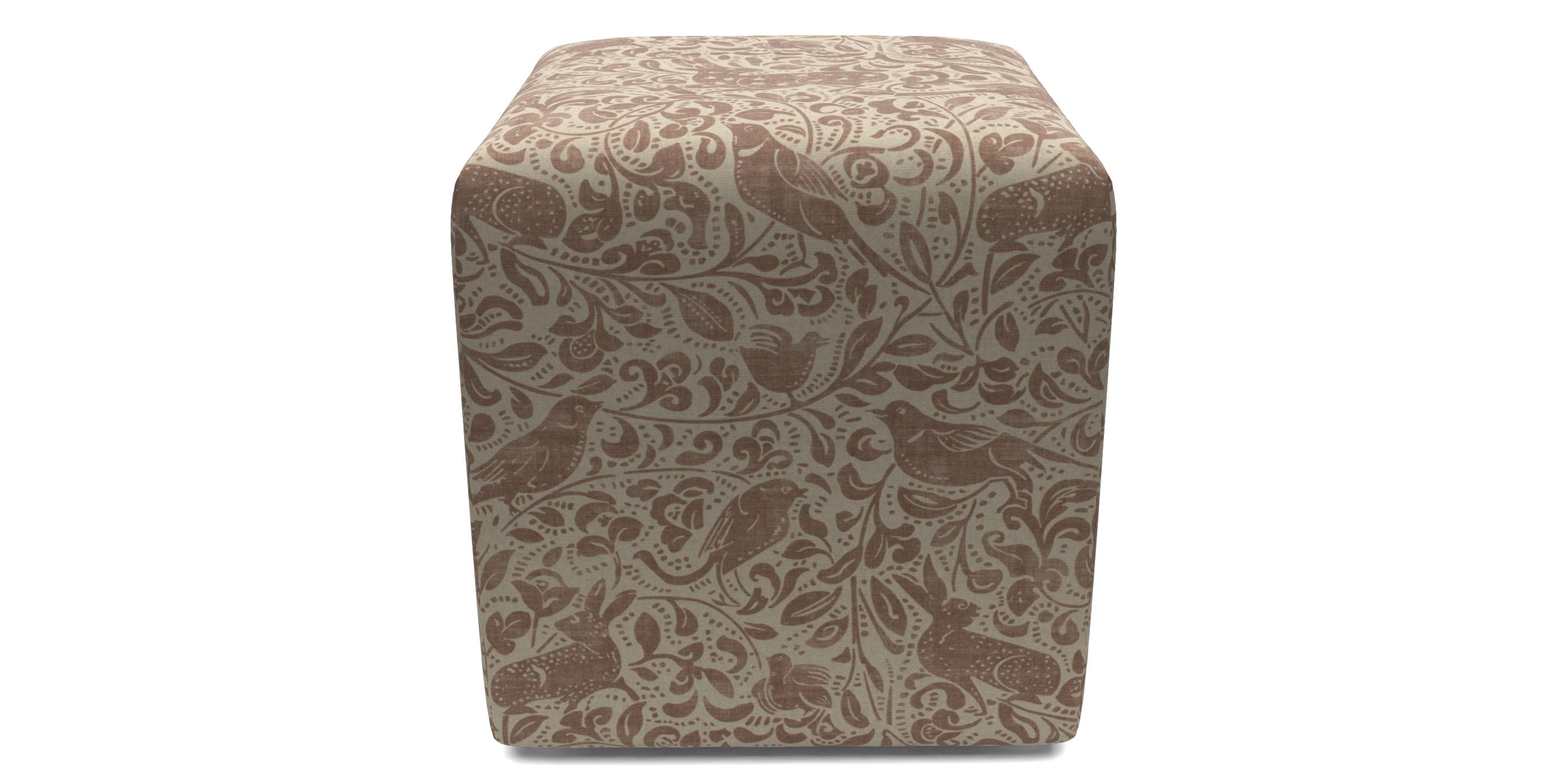 Cube Bespoke Standard Footstools in V&A Drawn From Nature - Bird and Rabbit : Terracotta