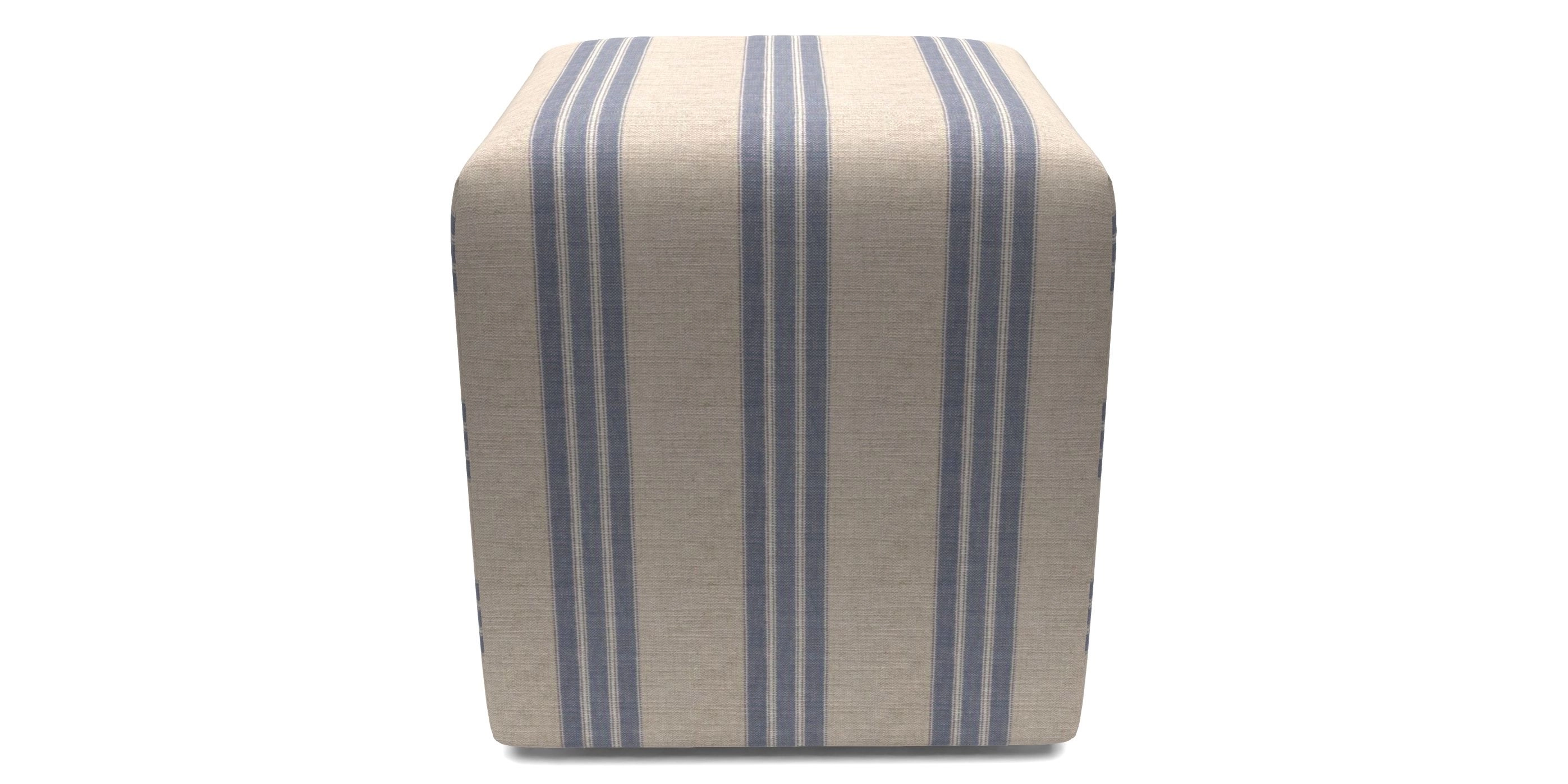 Cube Bespoke Standard Footstools in Cloth 18 - Stripe Bengal : Cloth 18 Stripe Bengal Indigo