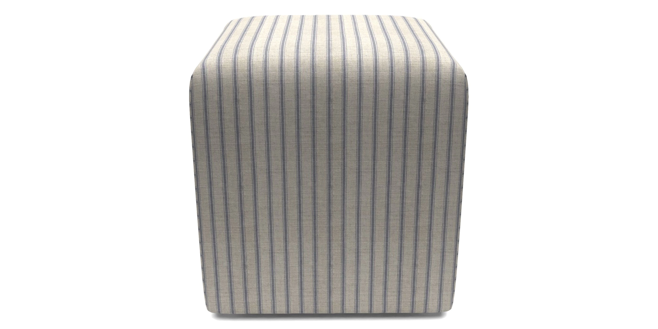 • Cube Bespoke Standard Footstools in Cloth 18 - Stripe Ticking : Cloth 18 Stripe Ticking Indigo