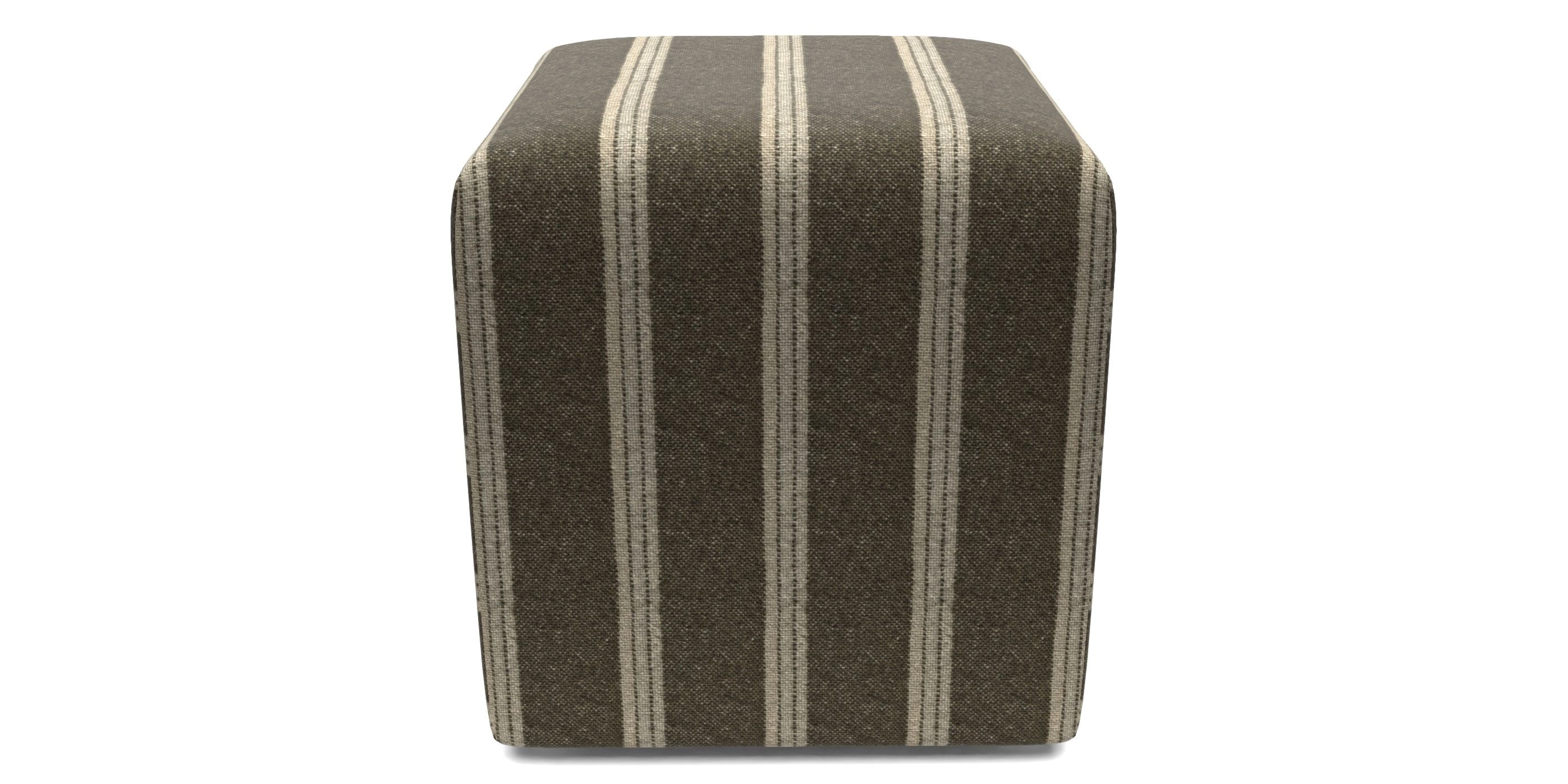Cube Bespoke Standard Footstools in Cloth 20 - Design 2 : Olive Stripe