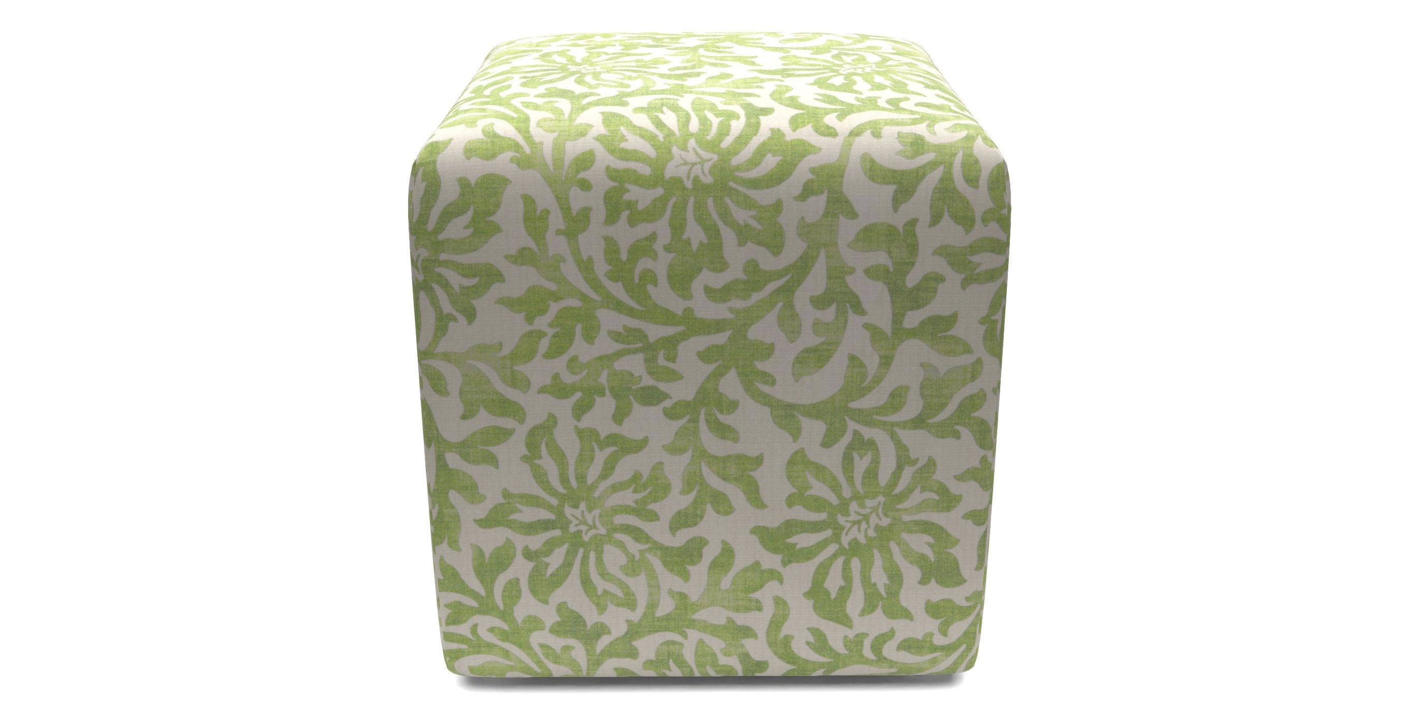 • Cube Bespoke Standard Footstools in V&A Brompton Collection - Floral Scroll : Lime