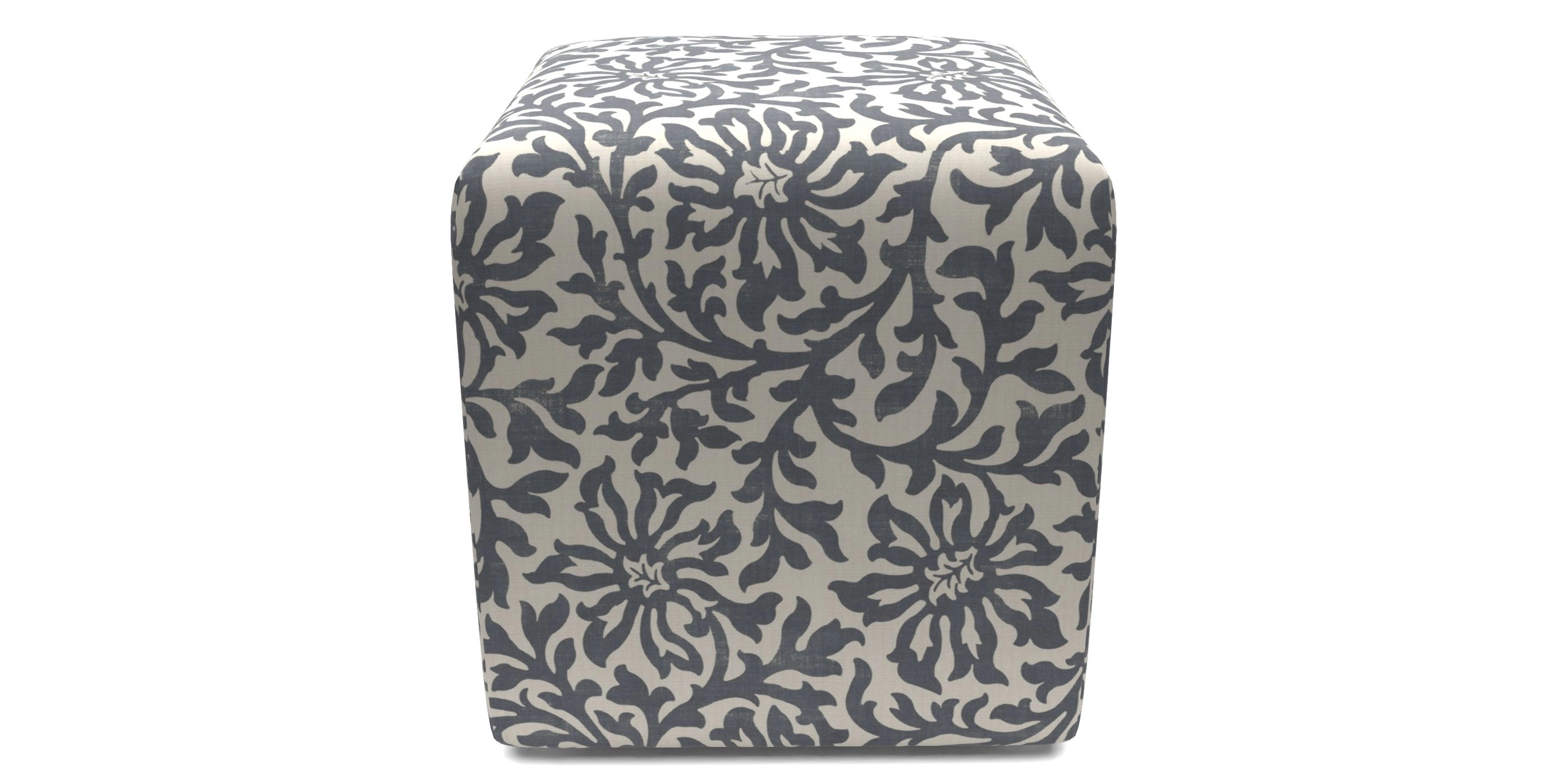 • Cube Bespoke Standard Footstools in V&A Brompton Collection - Floral Scroll : Midnight Blue