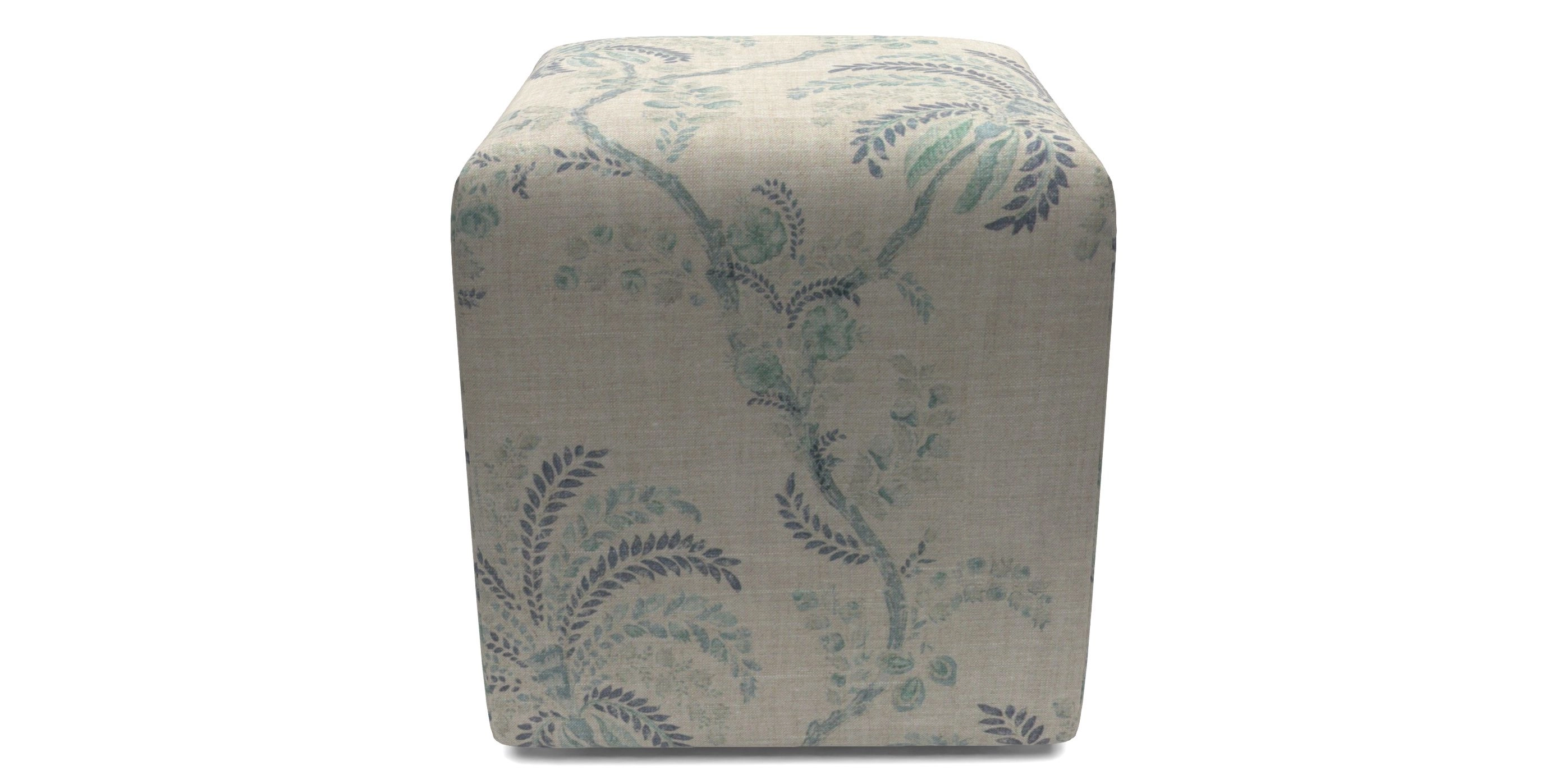 Cube Bespoke Standard Footstools in Floral Linen : Filicopsida Batik