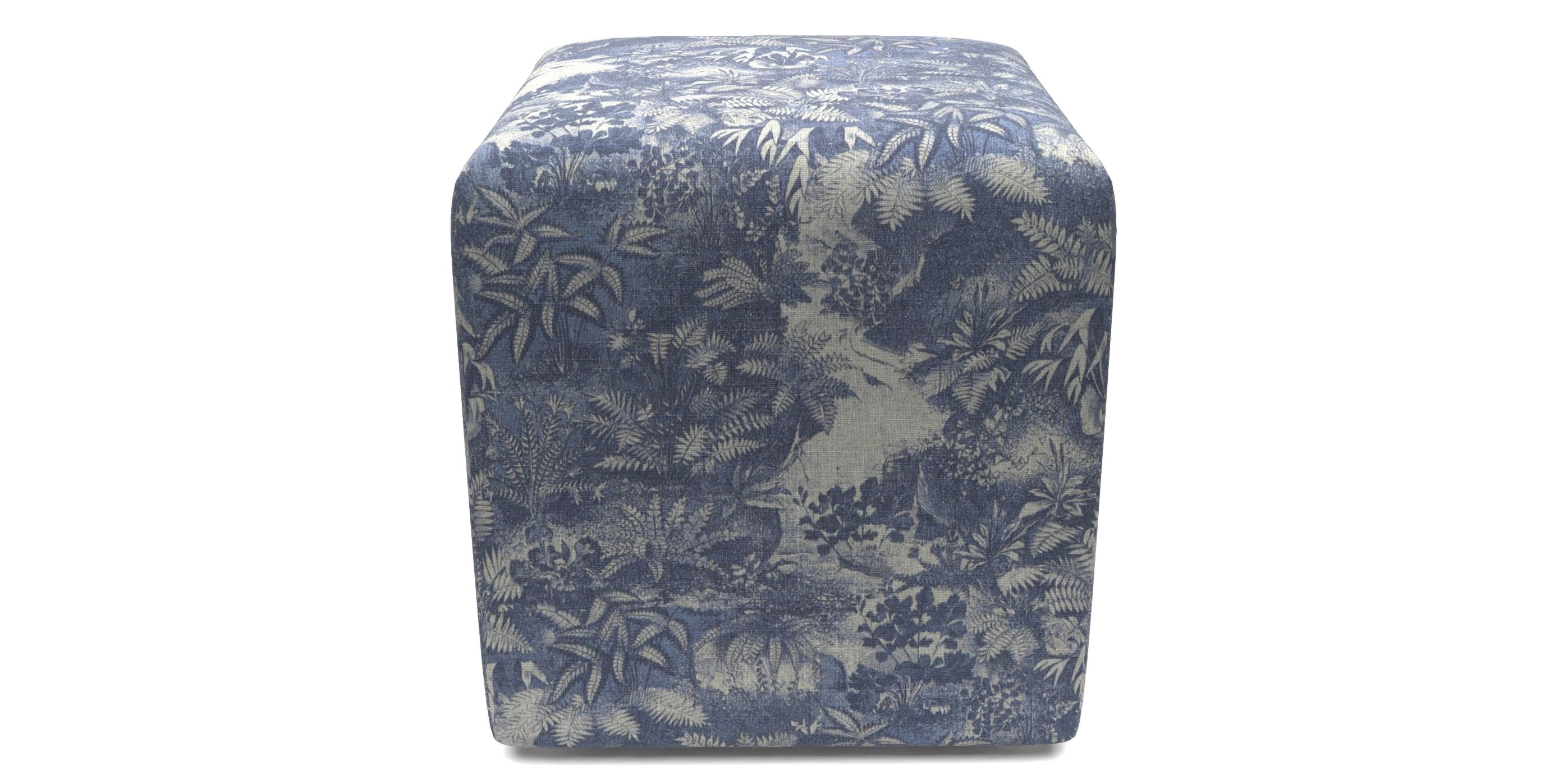 Cube Bespoke Standard Footstools in RHS Botanicals - Ferns Toile : Indigo