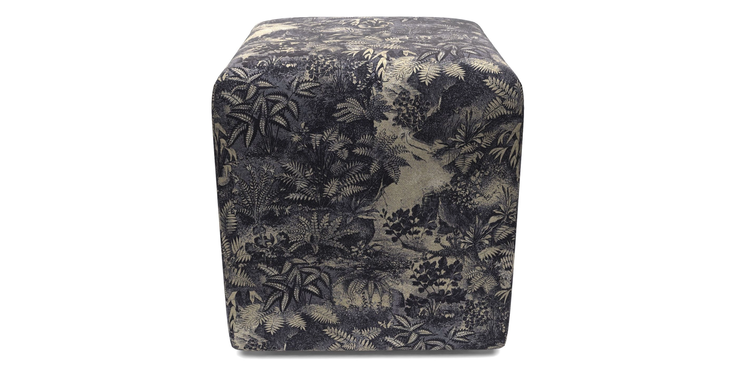 Cube Bespoke Standard Footstools in RHS Botanicals on Velvet - Ferns Toile : RHS Botanicals on Velvet - Ferns Toile Ink