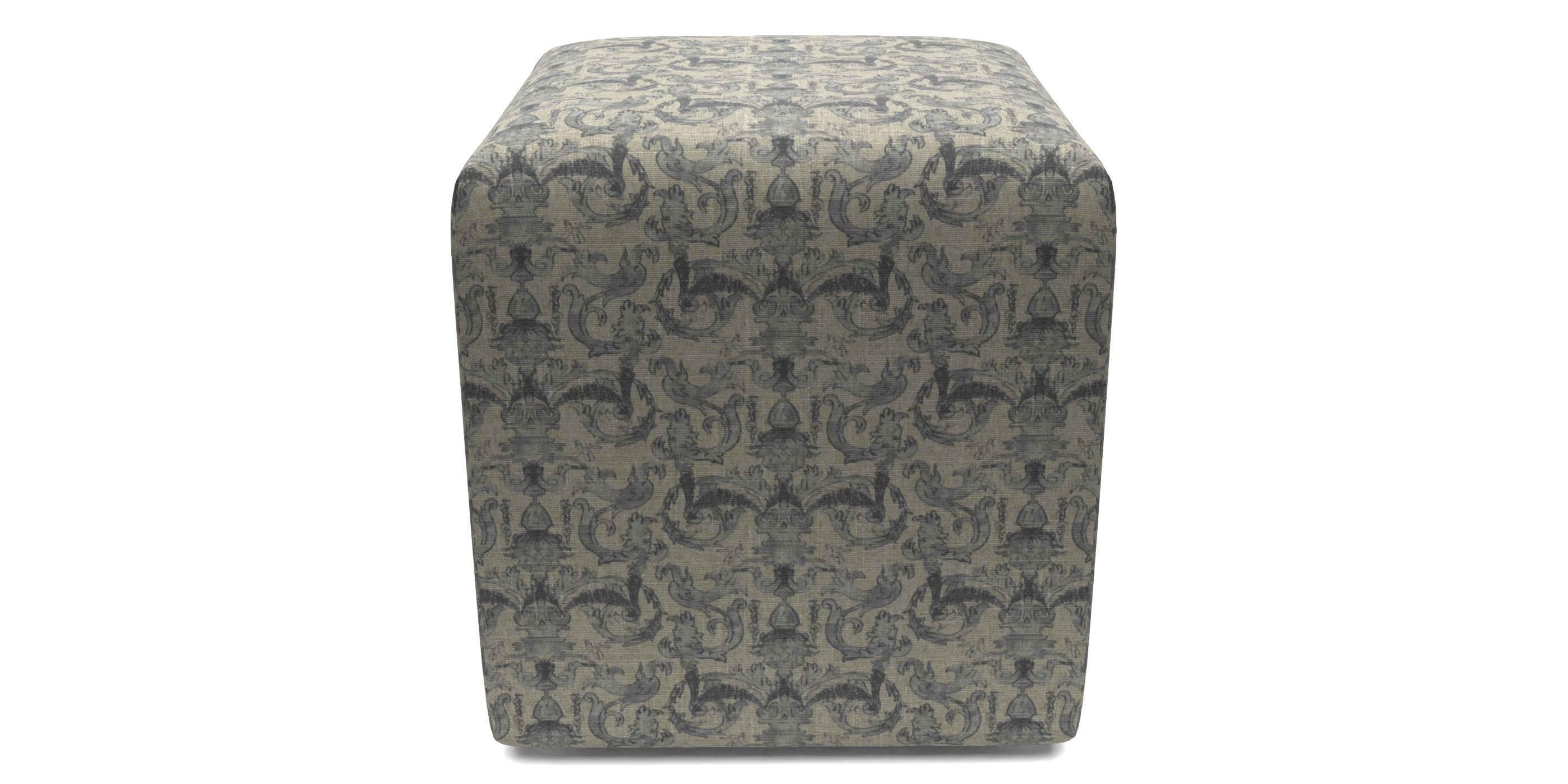 Cube Bespoke Standard Footstools in RHS Collection - Gertrude Jekyll Ornamental : Navy
