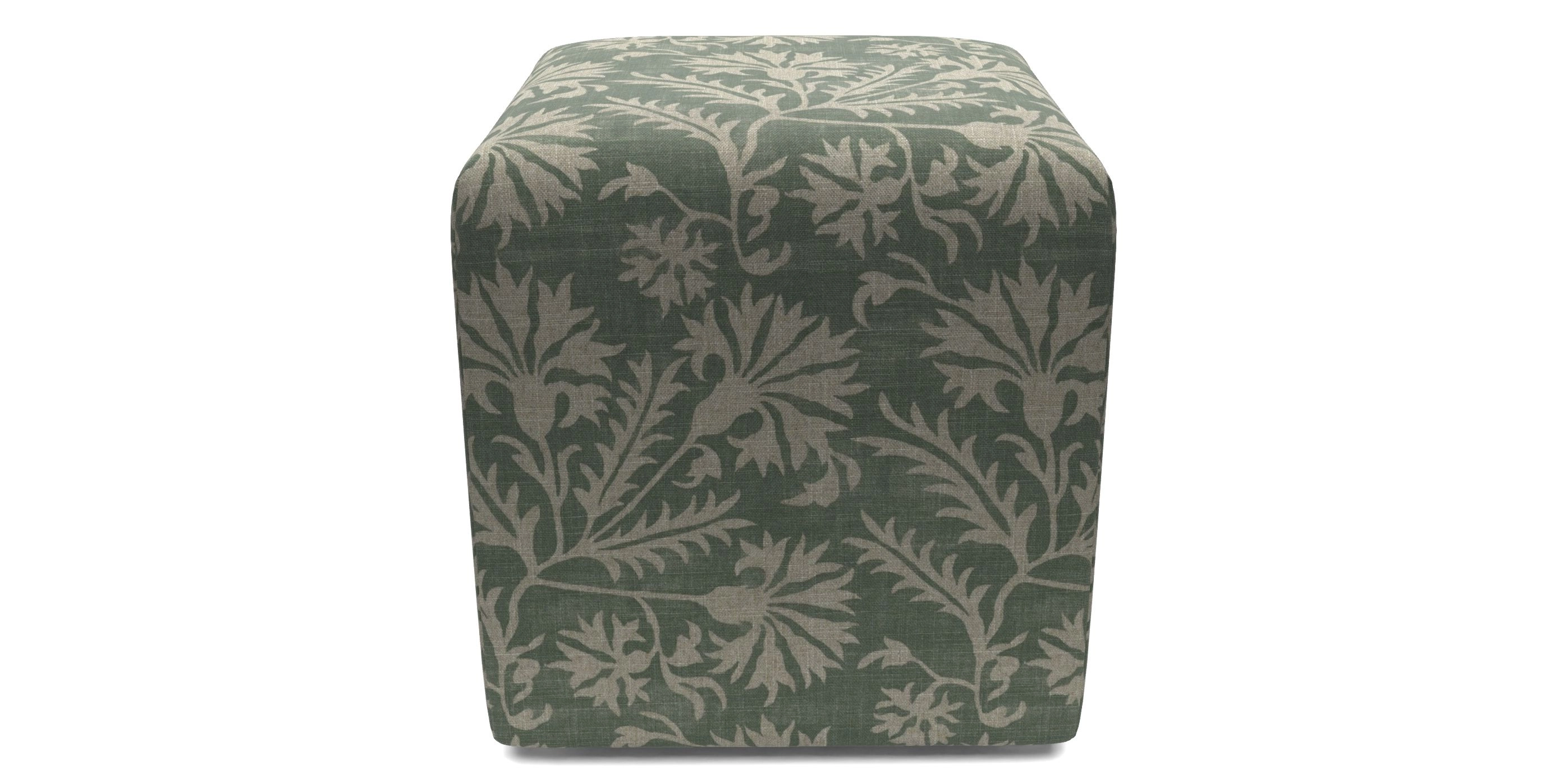 Cube Bespoke Standard Footstools in RHS Collection - Gertrude Jekyll Meadow Flower Reversed : Green