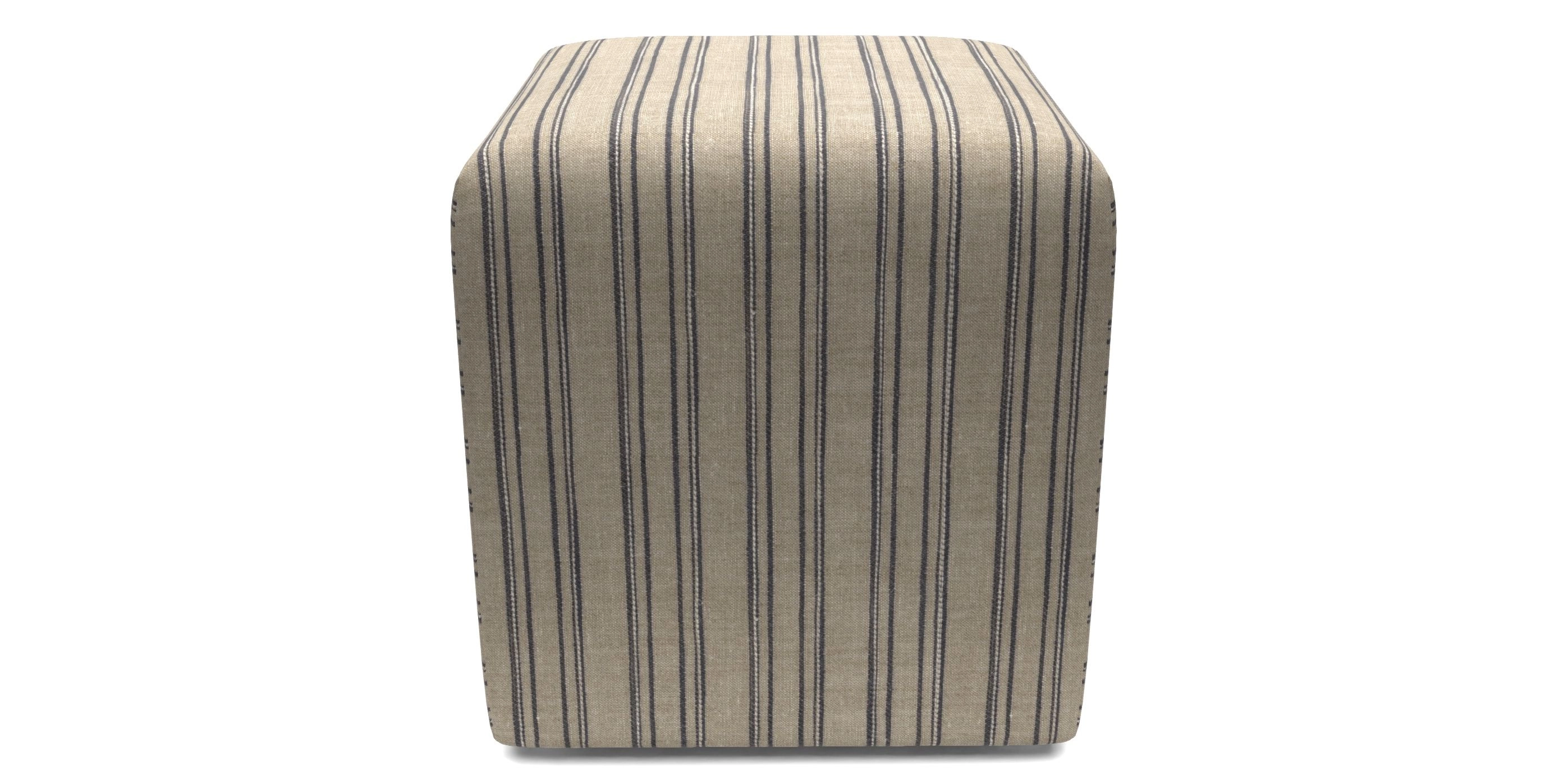 Cube Bespoke Standard Footstools in Woven Linen Stripe - Hovingham : Hovingham Woven Linen Stripe Blue