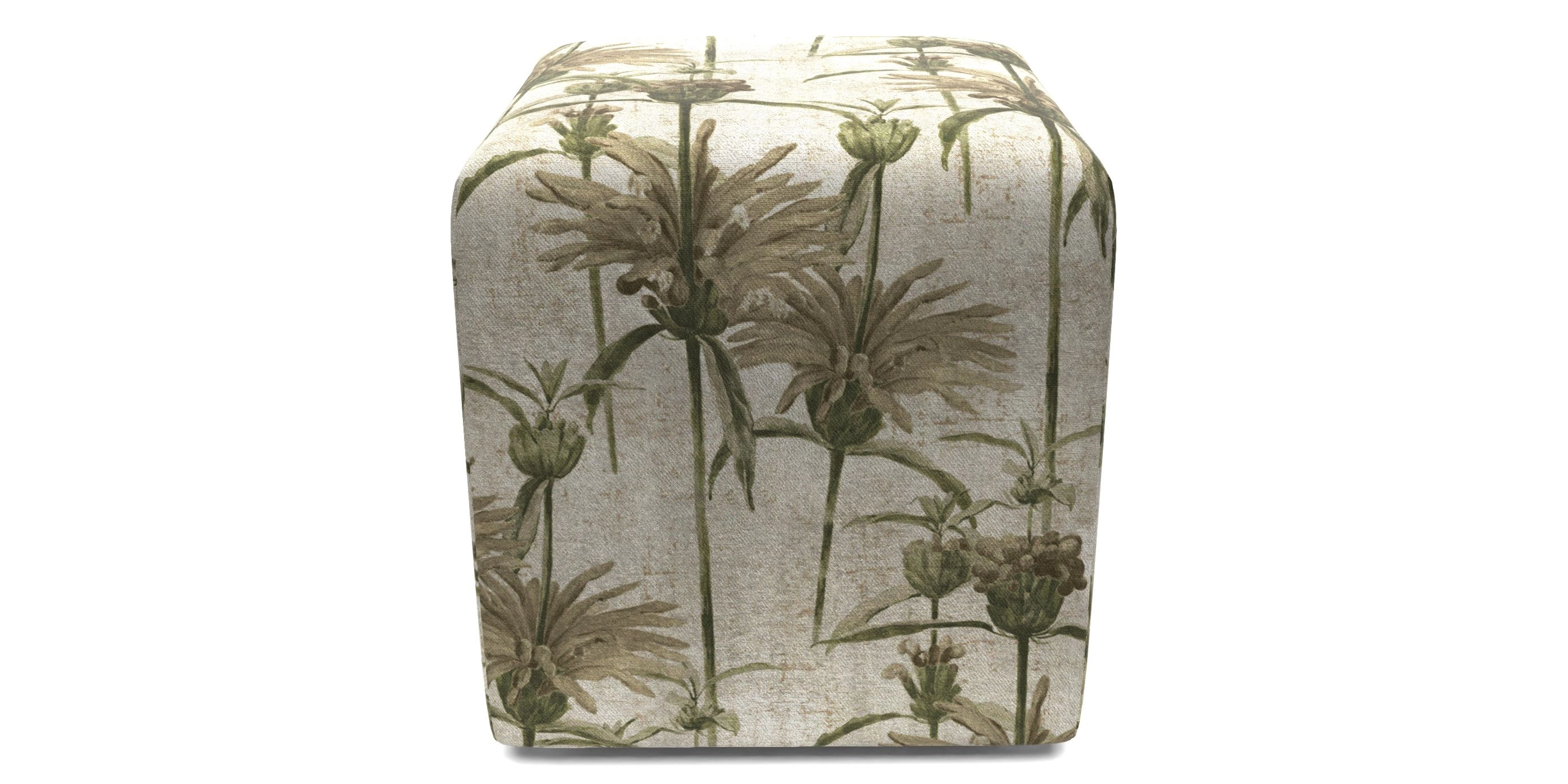 Cube Bespoke Standard Footstools in RHS Botanicals on Velvet - Henry Moon Lion's Tail : Alba