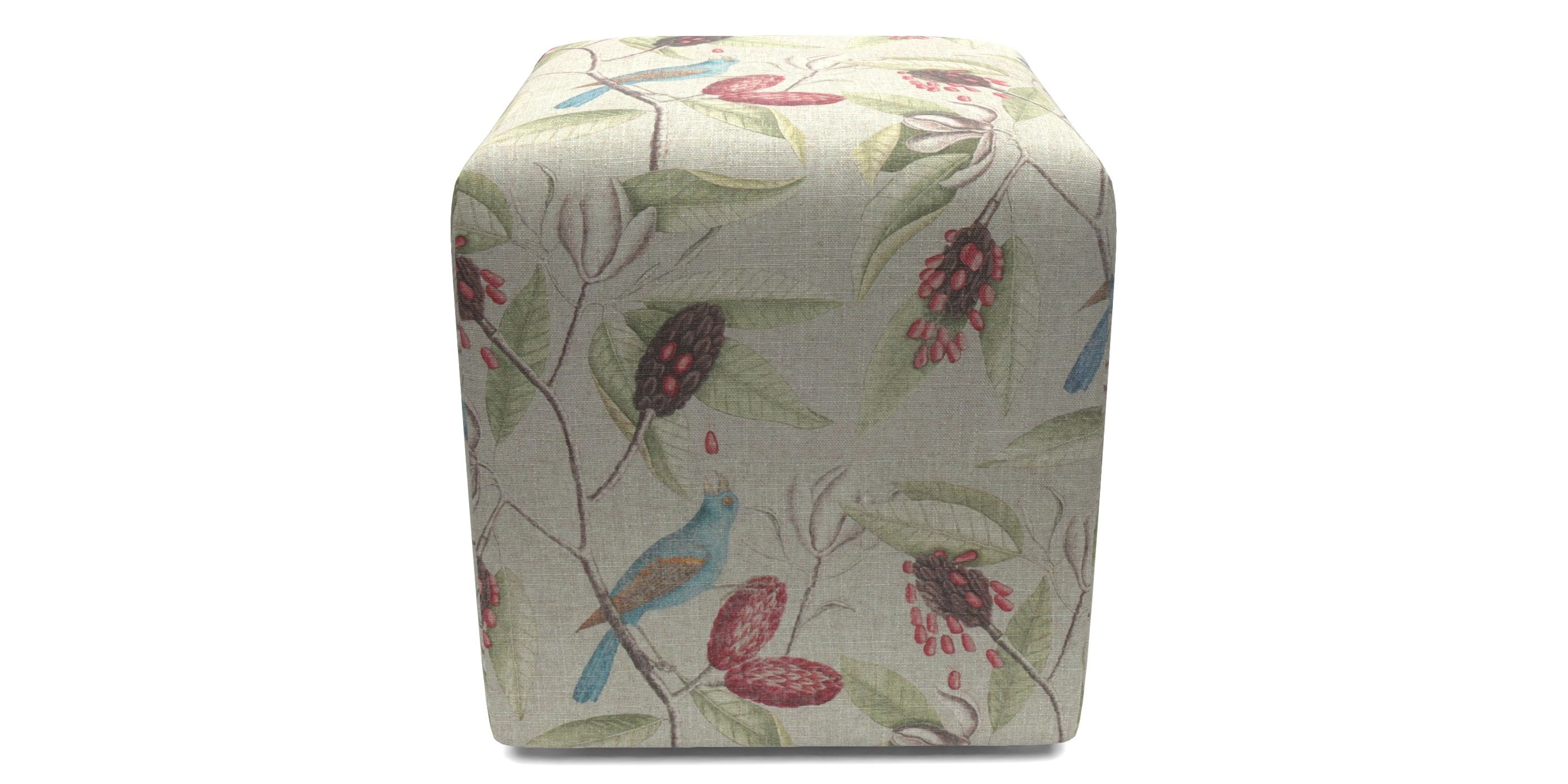 Cube Bespoke Standard Footstools in RHS Botanicals - Mark Catesby Grosbeak : Natural