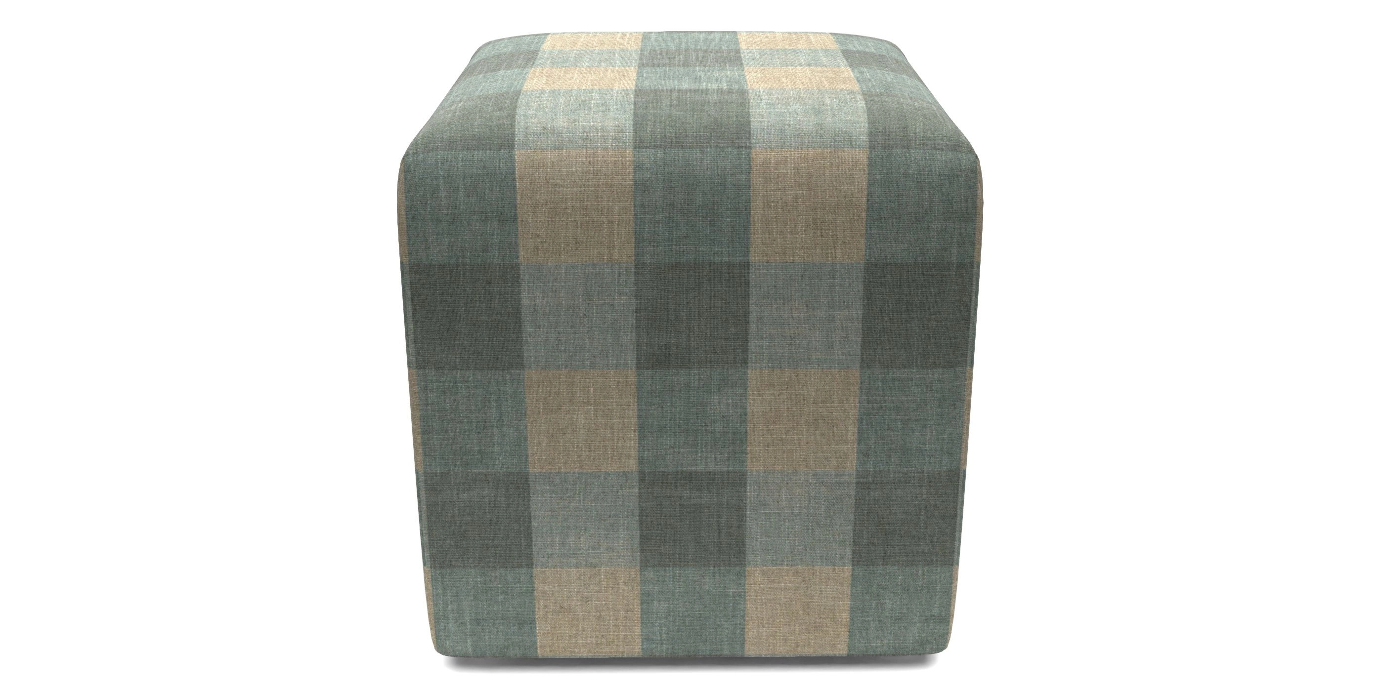 Cube Bespoke Standard Footstools in Sussex Gingham Large : Sea Mist