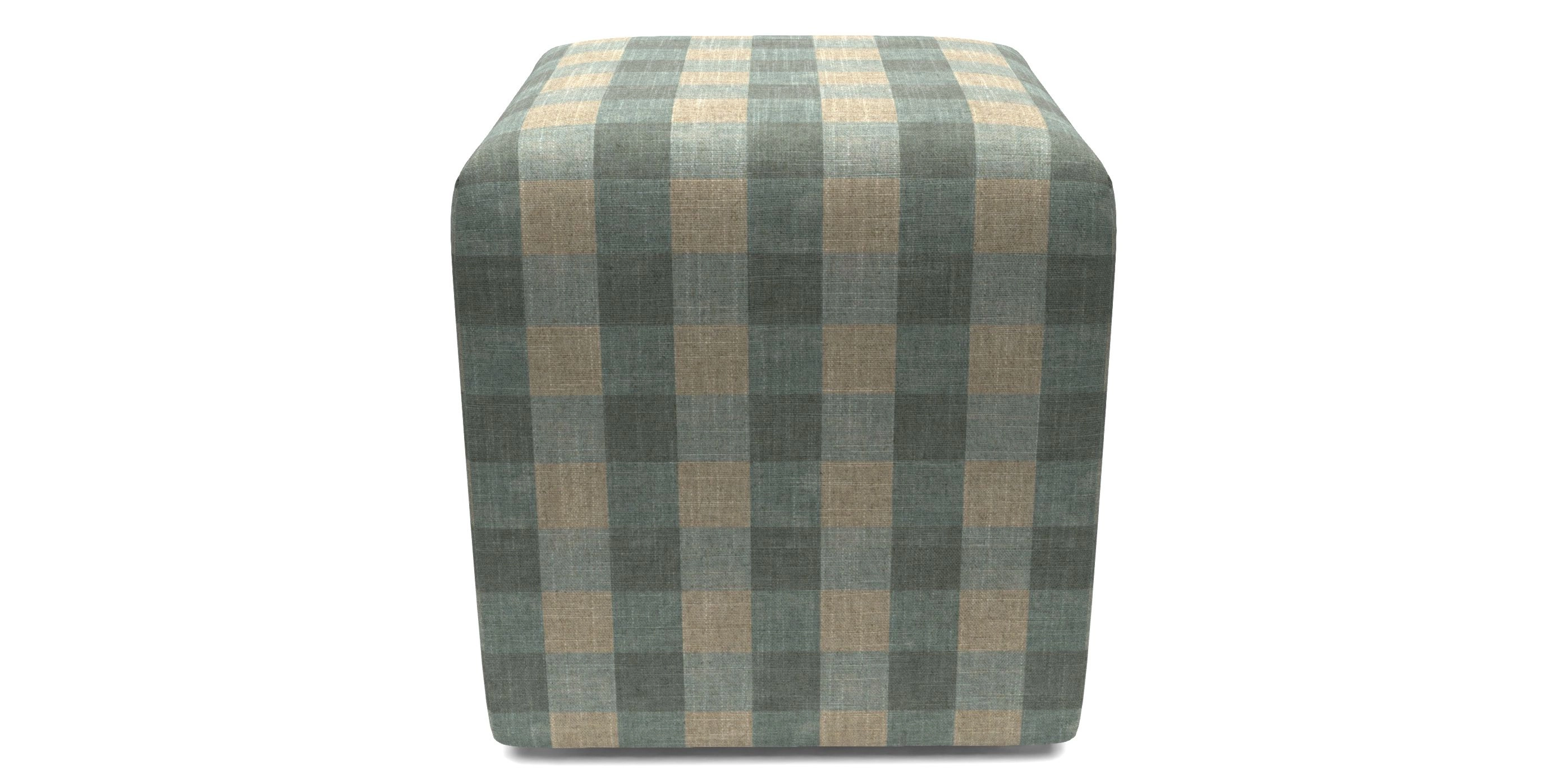 Cube Bespoke Standard Footstools in Sussex Gingham Small : Sea Mist