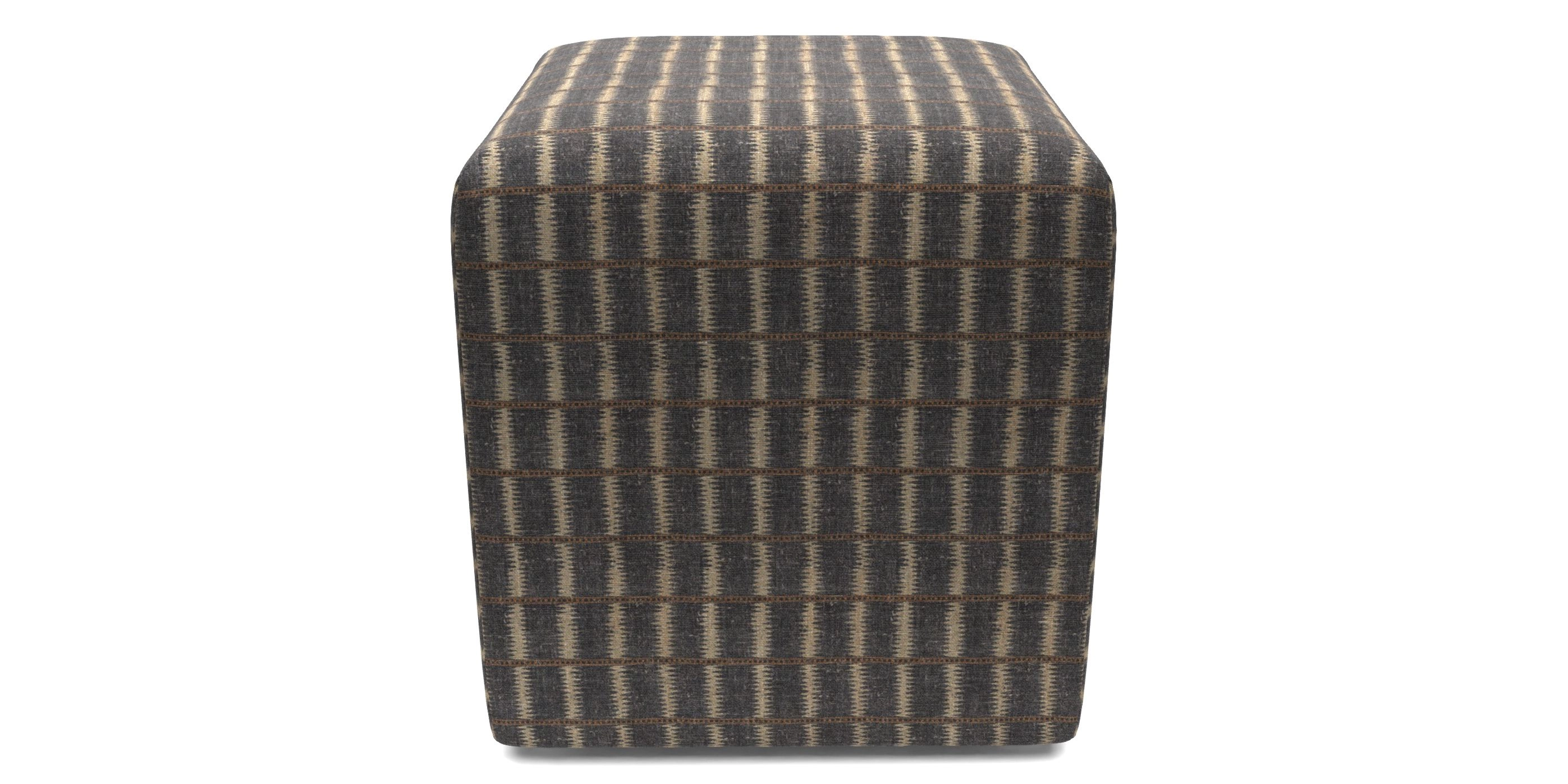 Cube Bespoke Standard Footstools in V&A Threads of India on Linen - Ikat Mirage : Ebony