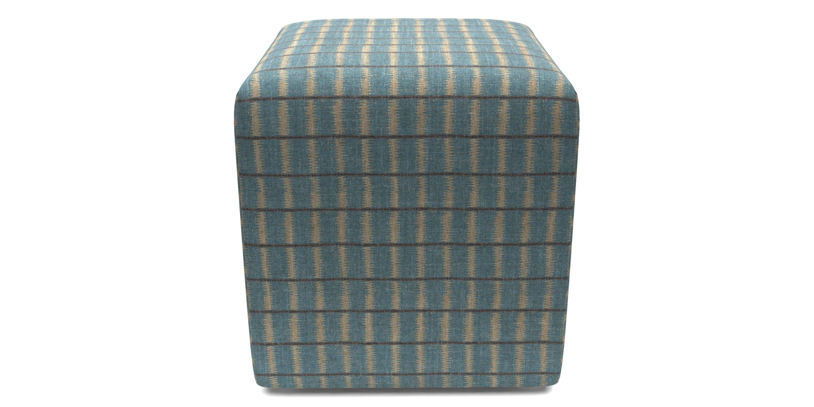 • Cube Bespoke Standard Footstools in V&A Threads of India on Linen - Ikat Mirage : Mineral Blue
