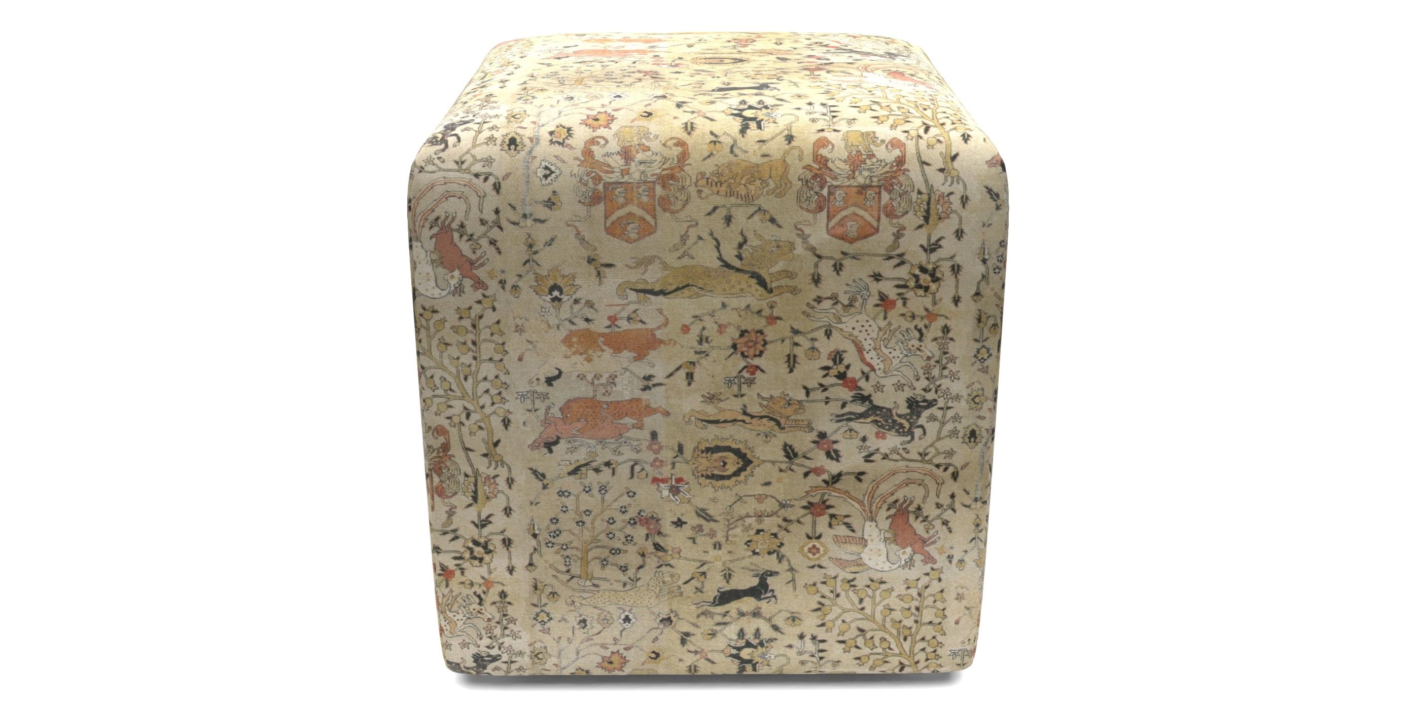 Cube Bespoke Standard Footstools in V&A Threads of India Opulent Velvets - Lahore Dynasty : V&A Threads of India Opulent Velvets - Lahore Dynasty Chalk