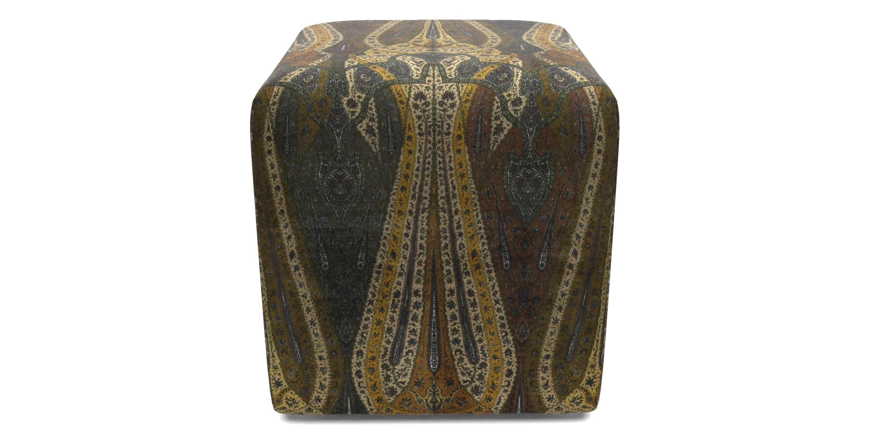 Cube Bespoke Standard Footstools in V&A Threads of India Opulent Velvets - Paisley Splendour : V&A Threads of India Opulent Velvets - Paisley Splendour Olive
