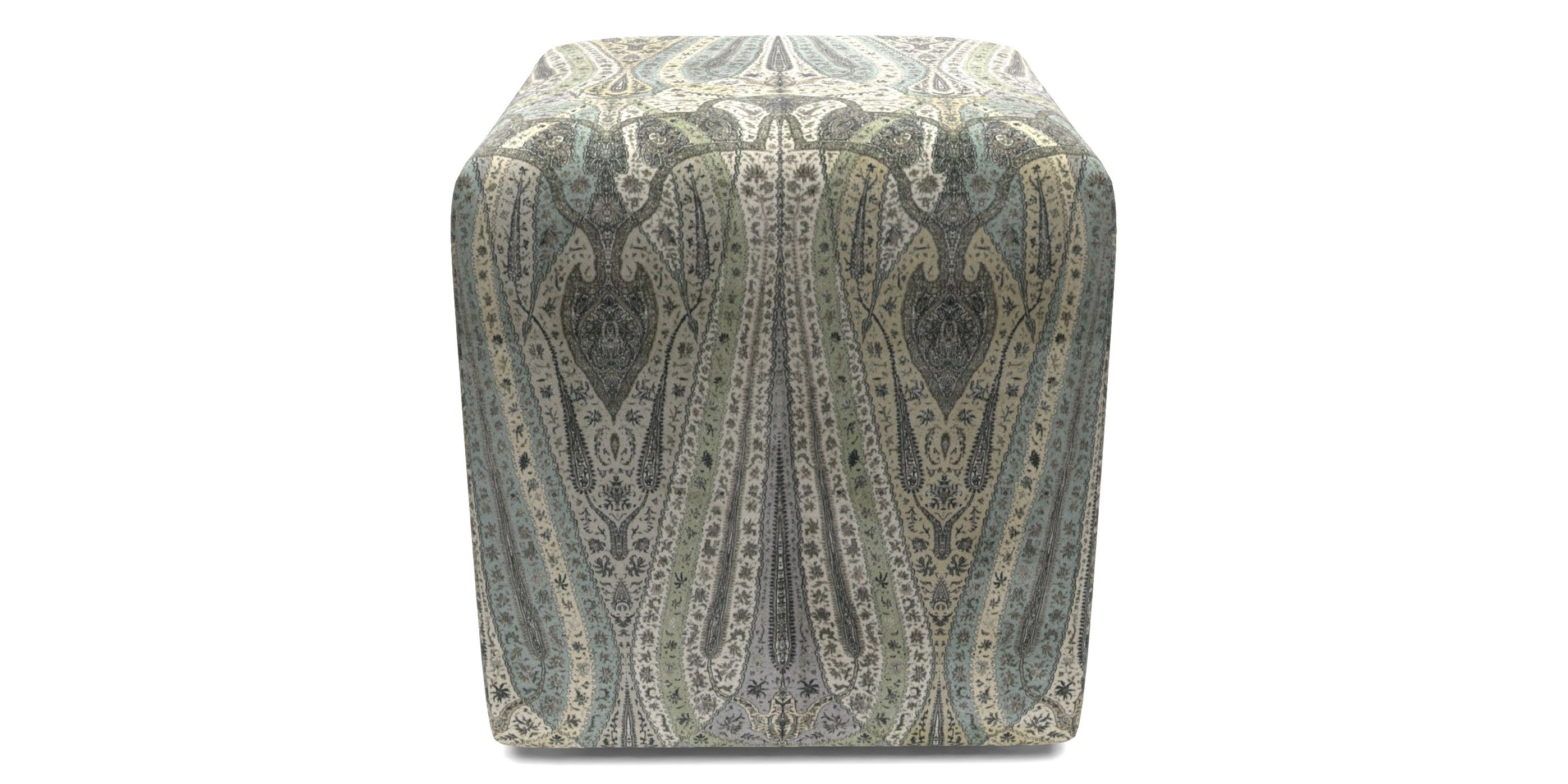 Cube Bespoke Standard Footstools in V&A Threads of India Opulent Velvets - Paisley Splendour : V&A Threads of India Opulent Velvets - Paisley Splendour Powder Blue