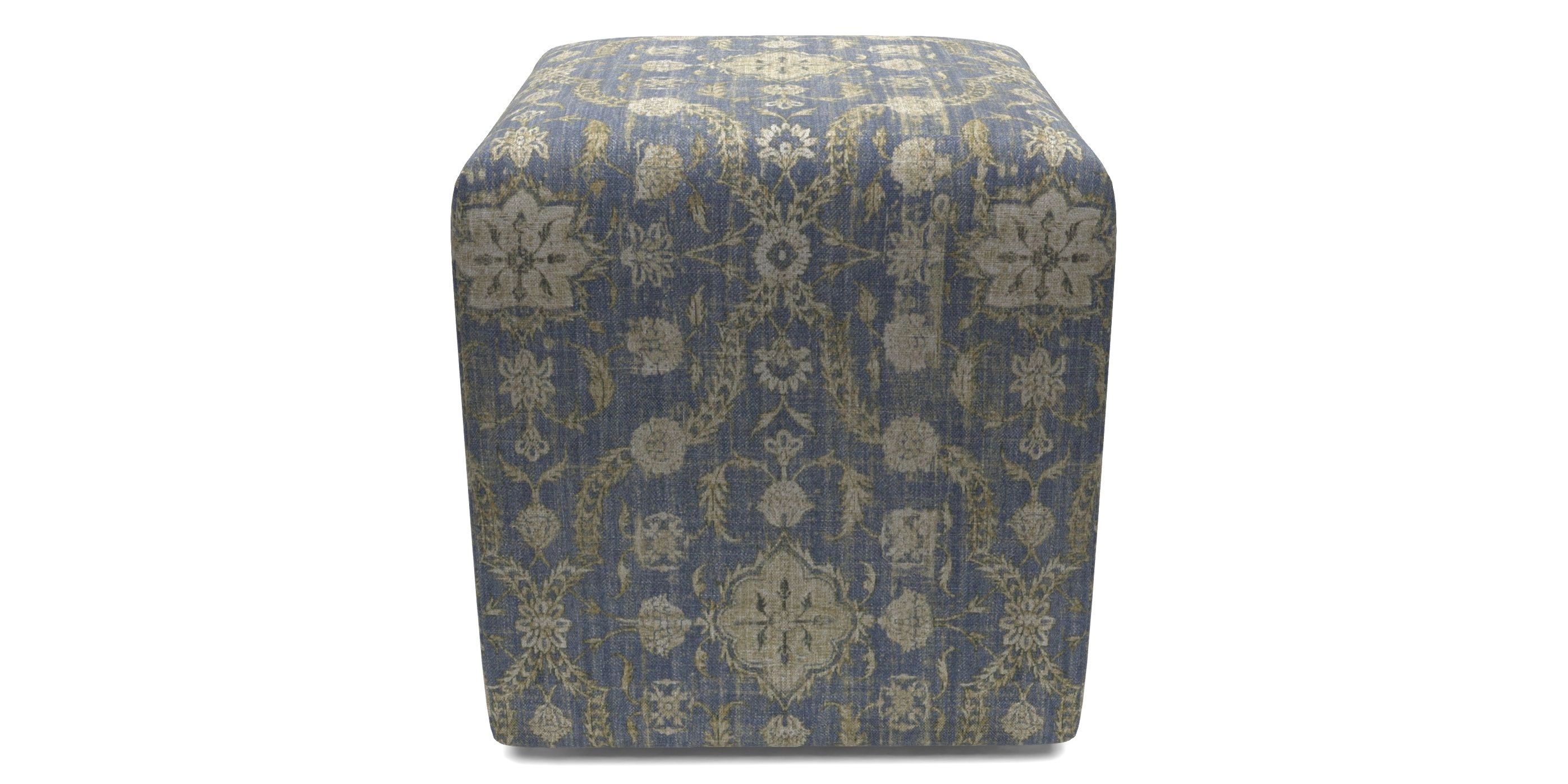 Cube Bespoke Standard Footstools in V&A Threads of India - Regal Arabesque : Denim