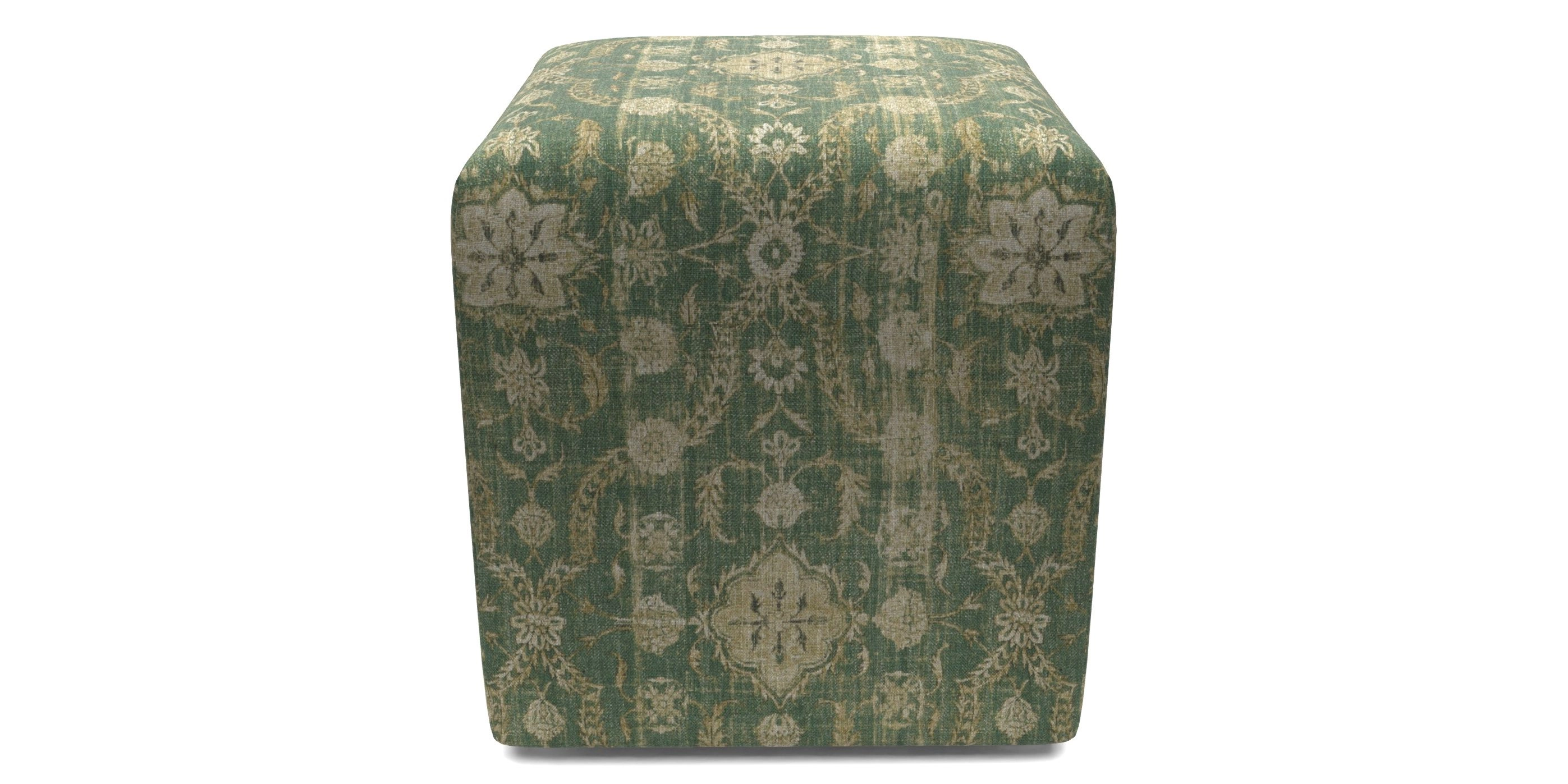 • Cube Bespoke Standard Footstools in V&A Threads of India - Regal Arabesque : Juniper