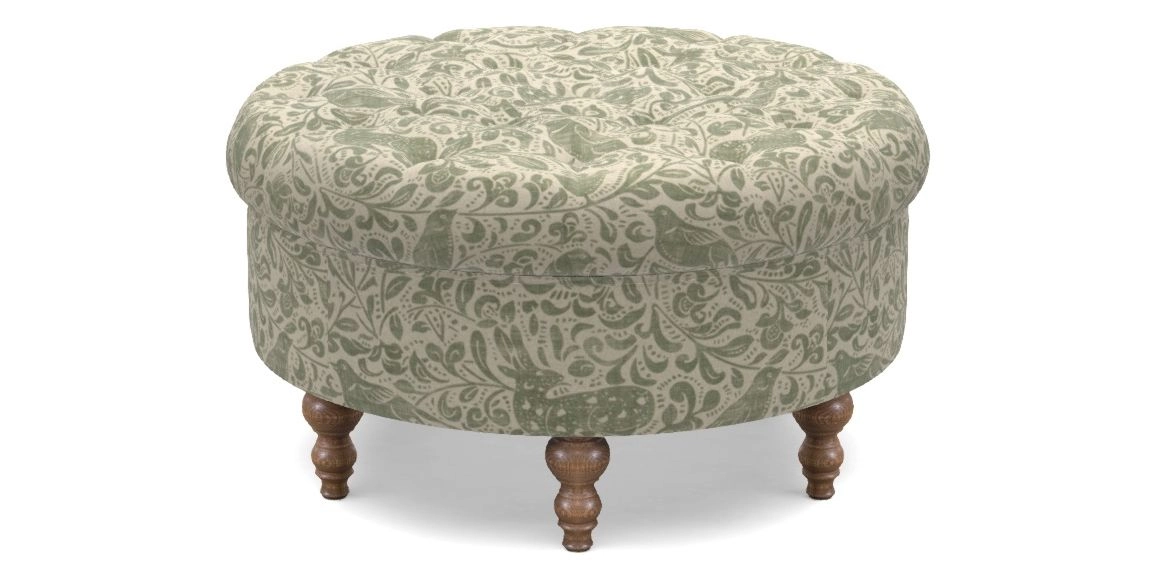 Burford Bespoke Round Footstools in V&A Drawn From Nature - Bird and Rabbit : Light Green