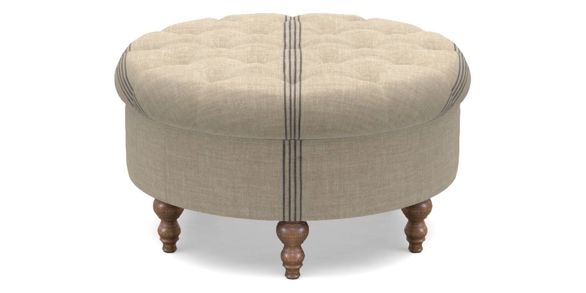 Burford Bespoke Round Footstools in Woven Linen Stripe - Baldersby : Baldersby Woven Linen Stripe Blue