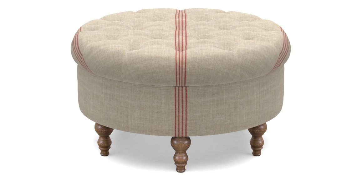 Burford Bespoke Round Footstools in Woven Linen Stripe - Baldersby : Baldersby Woven Linen Stripe Red