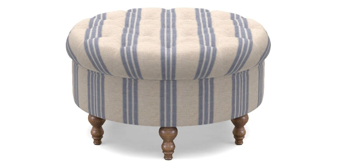 • Burford Bespoke Round Footstools in Cloth 18 - Stripe Bengal : Cloth 18 Stripe Bengal Indigo