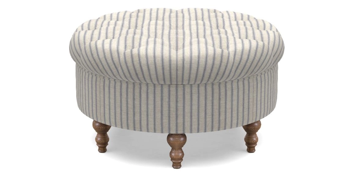 Burford Bespoke Round Footstools in Cloth 18 - Stripe Ticking : Cloth 18 Stripe Ticking Indigo