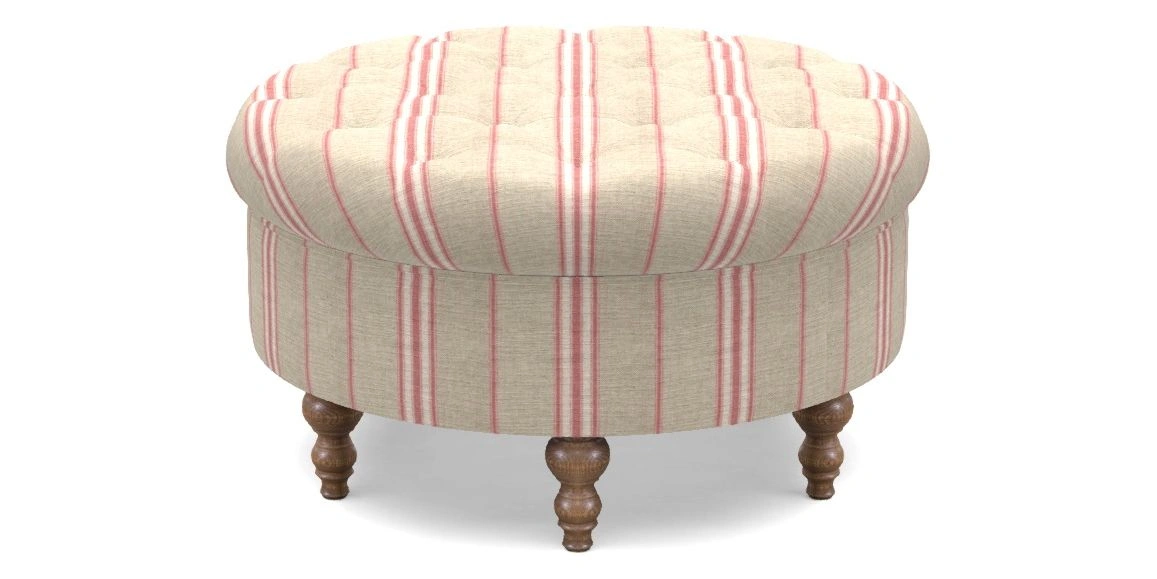 • Burford Bespoke Round Footstools in Cloth 18 - Stripe Regimental : Cloth 18 Stripe Regimental Cranberry