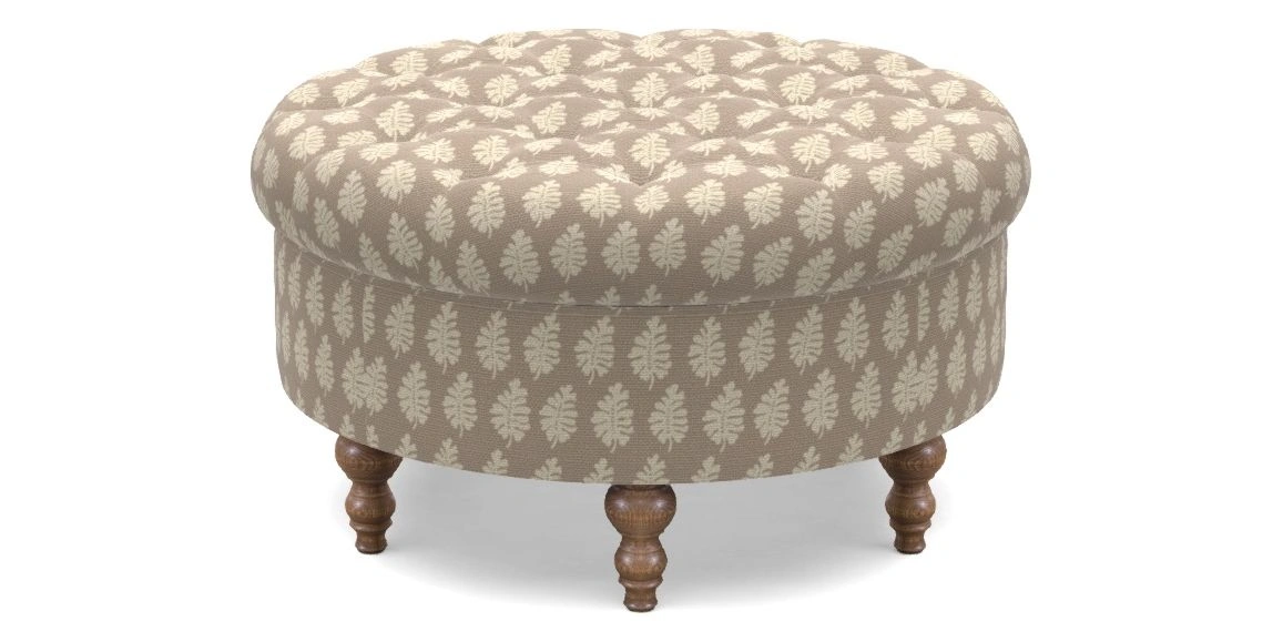 Burford Bespoke Round Footstools in Cloth 21 - Oak Leaf : Beech