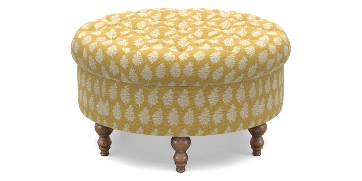 Burford Bespoke Round Footstools in Cloth 21 - Oak Leaf : Canary