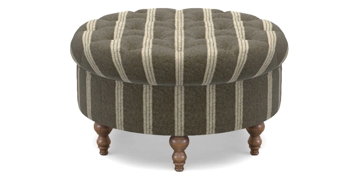 Burford Bespoke Round Footstools in Cloth 20 - Design 2 : Olive Stripe