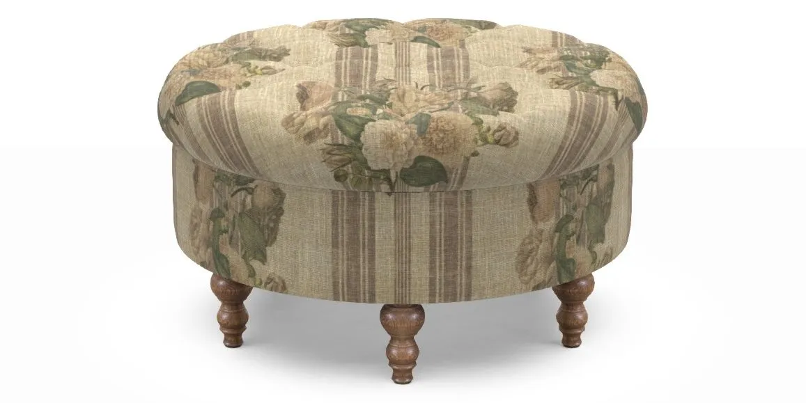 Burford Bespoke Round Footstools in RHS Etta's Bouquet : Alba Truffle