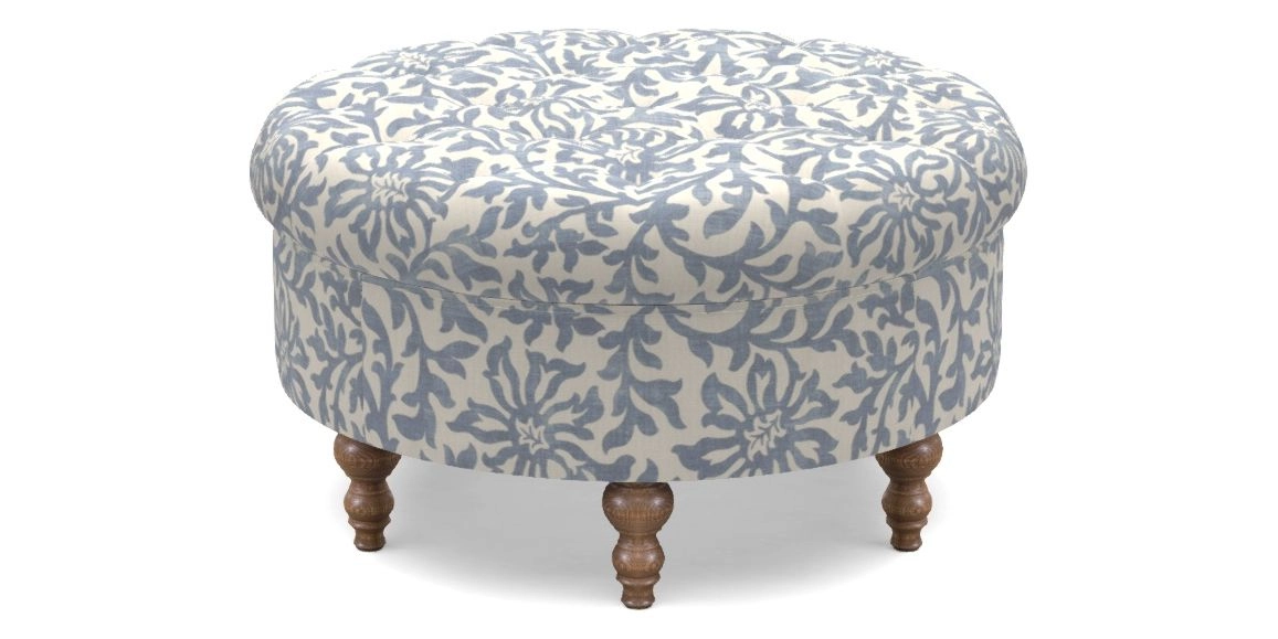Burford Bespoke Round Footstools in V&A Brompton Collection - Floral Scroll : Morning Blue
